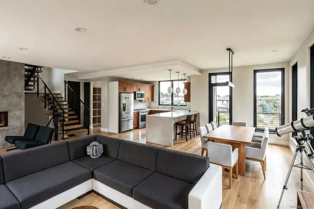 Looking for amazing ocean views, modern new construction, and plenty of outdoor space? Welcome to Freeman Street Homes, Downtown Oceanside’s newest development, nearing completion in 2025. This development offers the perfect blend of modern living and vibrant beach energy, featuring four expansive townhomes, a stylish single-level condo, and two ground-floor commercial spaces—ideal for a live-work lifestyle. This particular townhome spans over 2,200 sqft, showcasing sophisticated architecture and an abundance of natural light. You’ll find a striking floating staircase upon entering the unit, and a unique mid-century influence throughout this modern home. Details like rich dark woods, light-colored tiles, captivating wallpaper, and elegant mahogany cabinetry elevate every space, complemented by top-of-the-line fixtures and solid core doors. Plus, enjoy amazing ocean views right from your living space! Beyond the interiors, enjoy 2 private balconies and an incredible 636sqft rooftop entertaining space. Complete with a rooftop fireplace and ambient lighting, making it the perfect place for any gathering. And yes, you’ll find even more stunning ocean views from the rooftop, making every moment unforgettable. This unit will not last! Hard-hat showings available. **Images are renderings and subject to change.