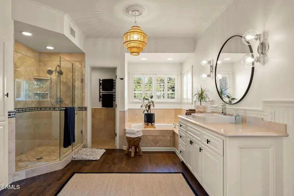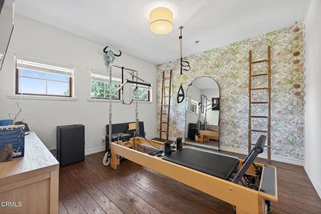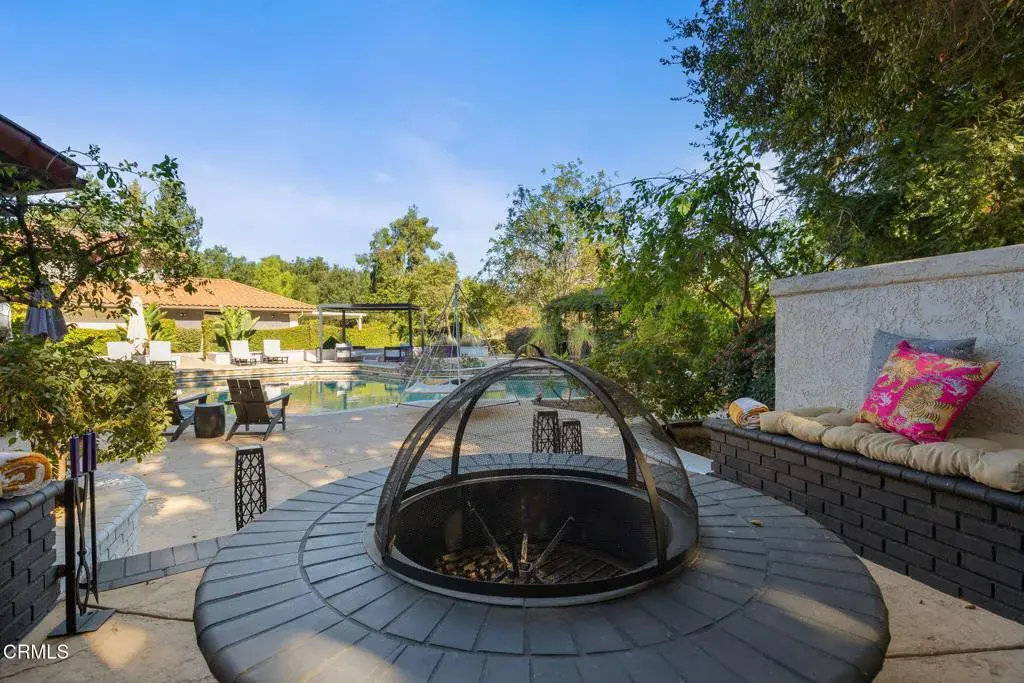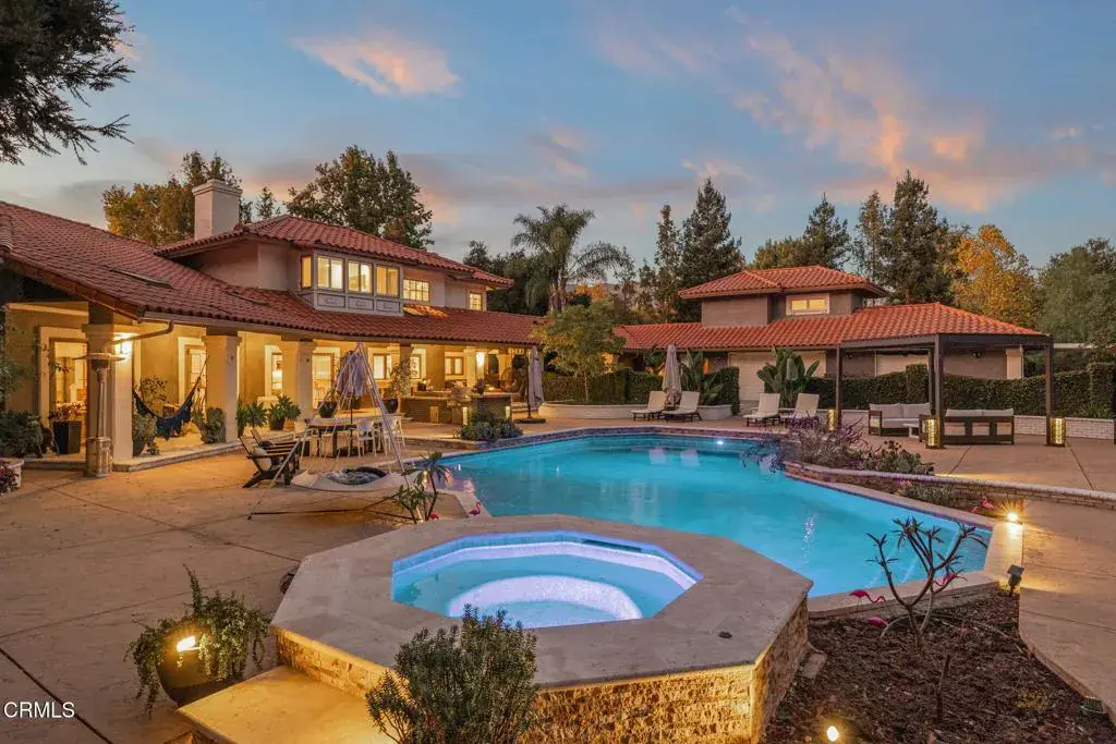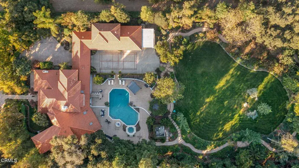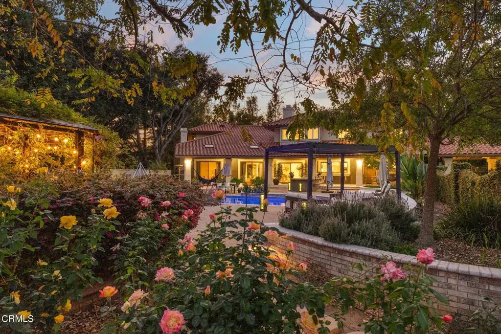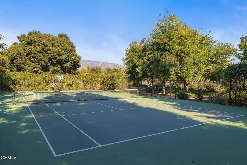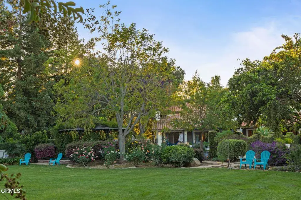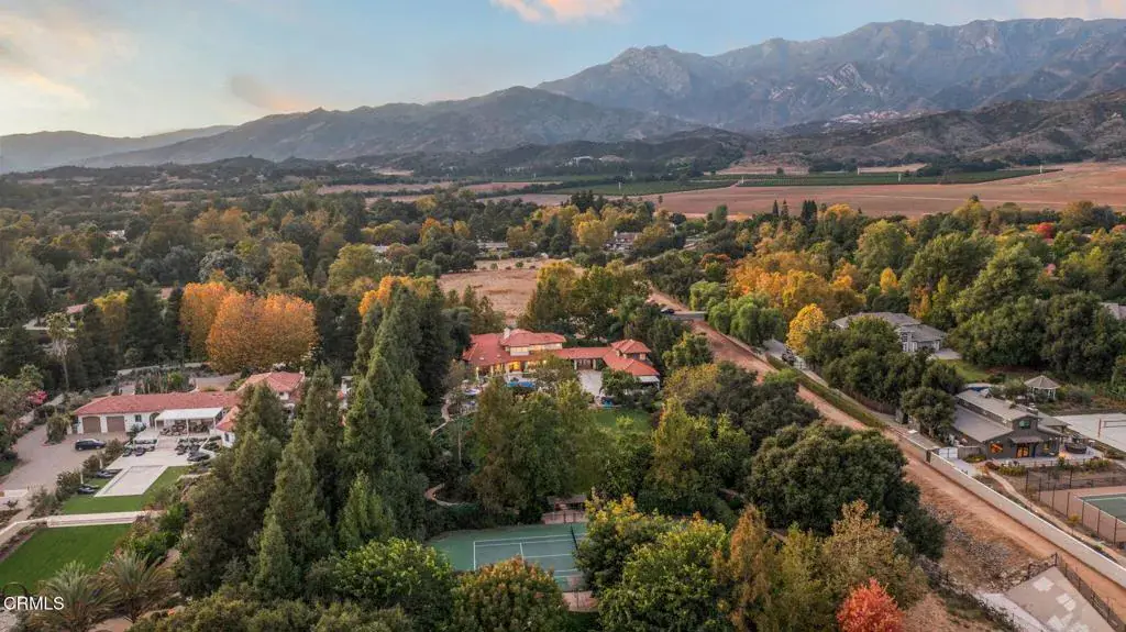 Welcome to your personal utopia, nestled in the exclusive gated community of Rancho Matilija in the beautiful Ojai Valley. This property offers a private sanctuary of absolute bliss. Experience the famous ”pink moment” sunsets from your custom estate. The main house features beautifully appointed rooms with exaggerated ceilings, three fireplaces (gas or wood burning), and elegant hardwood flooring. The layout is perfectly designed for entertaining, privacy, and warmth. Multiple living spaces and dining areas–both open and intimate–create a perfect harmony of elegance and function. A natural romance and ambiance flows through each beautiful space, both large and small, indoors and out. A separate guest house with stunning views includes a recreation room below, adding another layer of luxury. Enjoy the tennis and pickleball courts, as well as the private hiking trails. A private well sustains lush gardens and an organic orchard with apples, lemons, peaches, plums, persimmons, avocados, blackberries, and more! The additional outdoor amenities are equally impressive: a recently renovated pool, jacuzzi, sauna, outdoor kitchen, and charming paved walkways that wind through this dreamy compound. Cozy, built-in seating surrounds the fire pit, and an enchanting, covered gazebo draped in wisteria elevates the senses. Serenity at your fingertips. This property has all the hallmarks of a boutique resort, offering a unique blend of ambiance, character, and one-of-a-kind luxury living.
