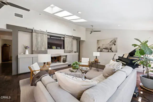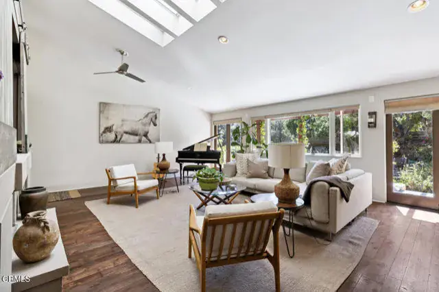 Welcome to this quiet family compound, tucked away on the East End of Ojai. Offering a place for everyone, with a combined square footage of 4965, which includes 6 bedrooms, 4.5 bathrooms. Originally built and designed by Mr. Shippee for his family. As you enter through the gate of the main house you are welcomed by a private courtyard, covered veranda, sparkling pool, impressive landscaping, and undeniable charm. Thoughtfully remodeled with elegant acacia wood floors, this home features an open kitchen, seamlessly connected to the dining room, highlighted by a stunning double-sided fireplace. Designed for both comfort and style, it’s truly an entertainer’s dream. A cook’s kitchen with top of the line appliances, plenty of counter space and light. Offering three bedrooms with French doors opening to the gardens, two and a half bathrooms. The guest house offers nearly 1400 square feet, has two bedrooms and one bathroom, a lovely private courtyard with a patio and a double car garage, making It perfect for guests and extended family. The rear house showcases modern concrete floors, 1 bedroom, 1 bath, a spacious living room, kitchenette, and two secluded patios for outdoor living. Well-designed grounds showcase a blend of drought tolerant landscaping and abundant fruit trees, including apple, orange, lemon, fig, pomegranate, and stately olive trees that gracefully line the driveway. Horse-friendly property with fenced paddock and turnout area. Altogether, this property offers three private homes, with a perfect mix of indoor/outdoor living, making it a truly unique property that combines functionality, versatility, and timeless charm.