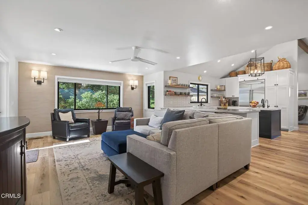Thoughtfully renovated and designed for modern living, 207 E. Eucalyptus Street offers a rare combination of comfort, durability, and flexibility in the village of Ojai. The main residence spans 2,067 square feet with three bedrooms and two-and-a-half baths, featuring a primary suite on the main level and an open, functional layout ideal for everyday living and entertaining. Easy access to all of the shops, amenities and restaurants that Ojai has to offer. Completed in 2018, the renovation includes a raised and leveled foundation, owned solar, and a host of high-quality finishes such as quartz countertops, stainless steel appliances, steam oven and luxury vinyl flooring on the ground floor. Fire-conscious construction elements–noncombustible Hardie(r) siding, tempered glass windows, and limited exterior venting–provide added peace of mind, while thoughtful details like a dedicated laundry room with sink and a two-car garage enhance daily convenience. Set on an 8,443-square-foot zoned VMU, the property also features a beautifully appointed 860-square-foot guest house with its own address (207A), full kitchen, bedroom plus loft, and extended one-car garage. With separate utility meters for each residence, the setup is ideal for multi-generational living, rental income, or a private home office or studio. A rare opportunity to own a well-improved, versatile property that blends quality craftsmanship, smart upgrades, and exceptional flexibility–all in one compelling offering.