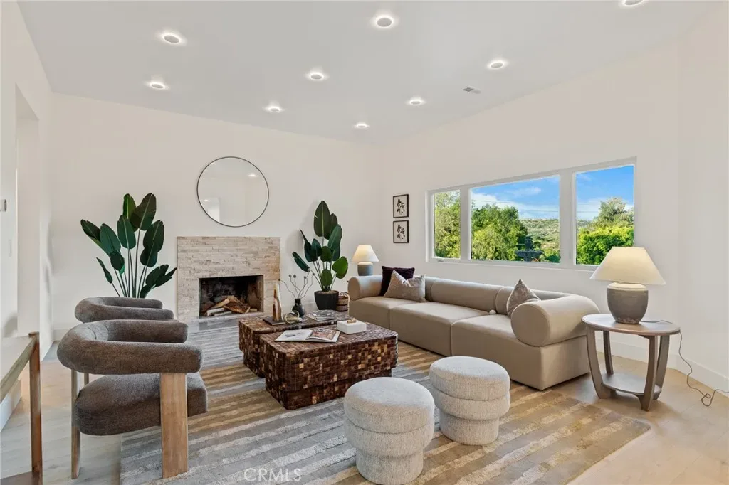 Outdoors, enjoy terraced grounds, mature trees, mountain views, and a beautifully hardscaped patio. The restored barn with covered stable offers flexibility for equestrian use, car collection, events, or creative space.