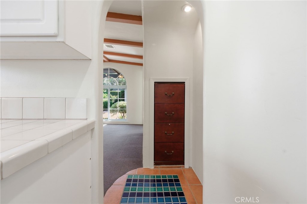 Originally built as a residence, this freestanding building still carries its historic charm with arched doorways, open-beam ceilings, built-ins, Spanish tile accents, original arched wall niche with decorative tile accent, abundant natural light, and an original “beehive style” adobe fireplace anchoring the conference room.