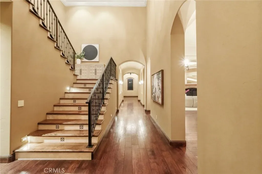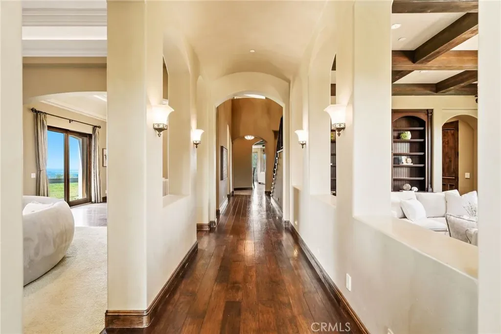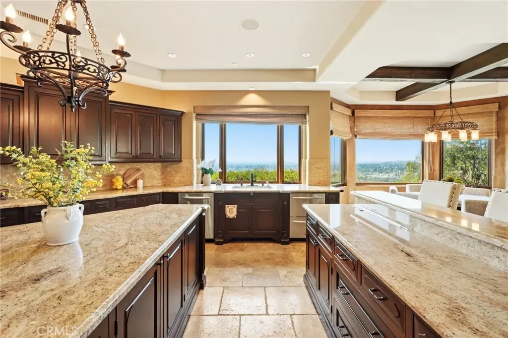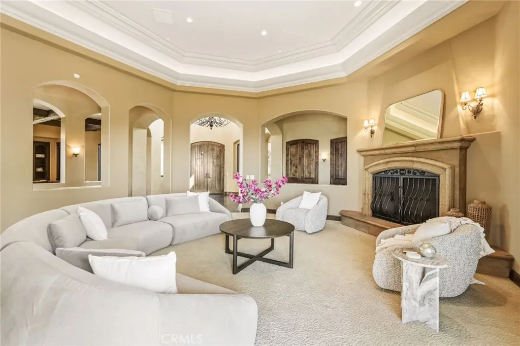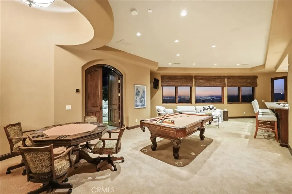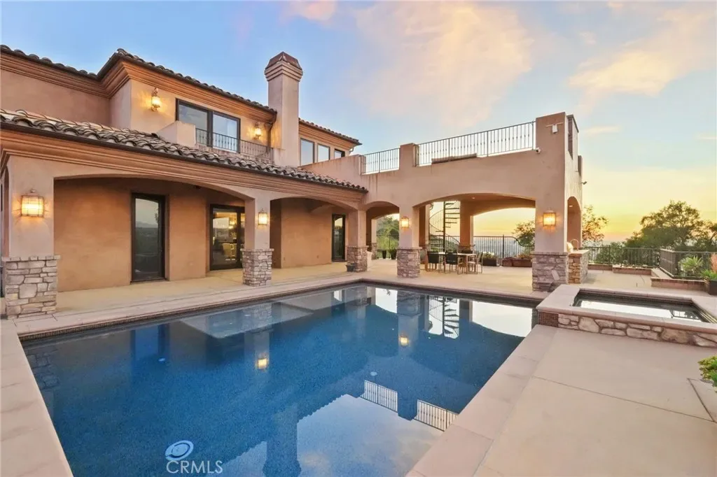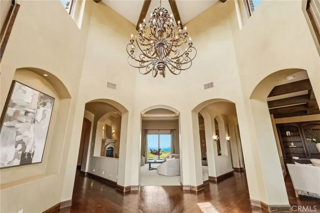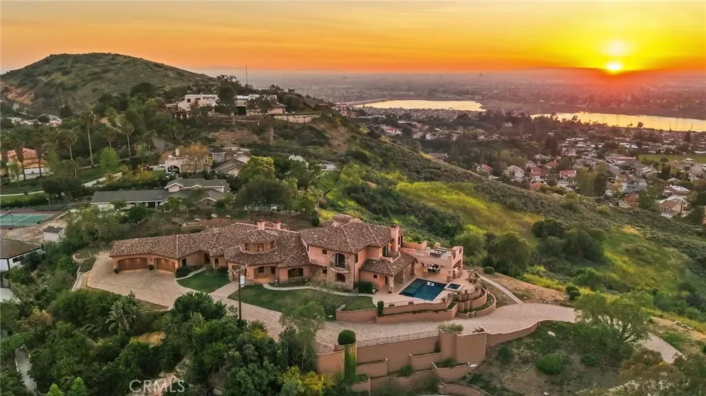 Set behind private gates on a secluded one-acre lot, this exceptional custom estate offers breathtaking 270-degree city light and sunset views with unmatched privacy. The double-door entry opens to a soaring 21-foot foyer, leading to elegant living spaces with 14-foot custom lighted ceilings designed to showcase the spectacular vistas.