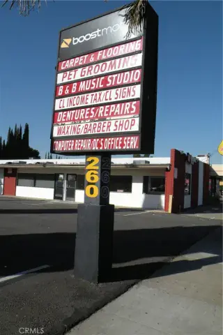 Signage is available on front main sign showing all tenants as well as rights to a sign above the unit. Good signage on a very busy street close to Tustin/Chapman intersection.