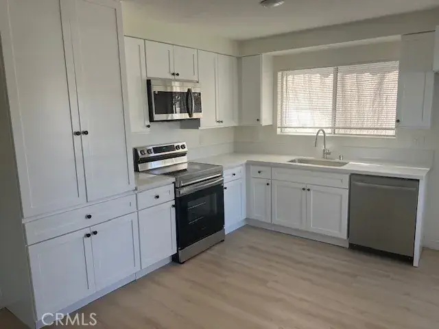 Welcome to your beautifully remodeled single-level 3 bedroom, 2 bathroom home in the heart of Orange! This unit ( Unit A) offers a fresh, modern living experience with brand-new upgrades throughout & its own private entrance and enclosed front patio; perfect for outdoor dining, relaxing or an enclosed play area for kids. Luxury waterproof vinyl flooring, new baseboards & doors, fresh paint & fully upgraded lighting & ceiling fans in every room. Spacious living room includes its own AC unit, & each bedroom features wall heaters for year-round comfort. Fully remodeled kitchen features quartz countertops, brand-new cabinetry & all new stainless steel appliances including electric oven, microwave & dishwasher. Primary bedroom includes own private en-suite bathroom, while the 2 additional bedrooms share a convenience Jack-and Jill bath. 1 car garage and in unit laundry hook ups. Shared coin-operate laundry room is also available onsite. Additional outdoor parking spot $100.00 per month. Landlord pays sewer, water & trash.