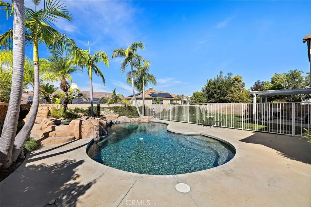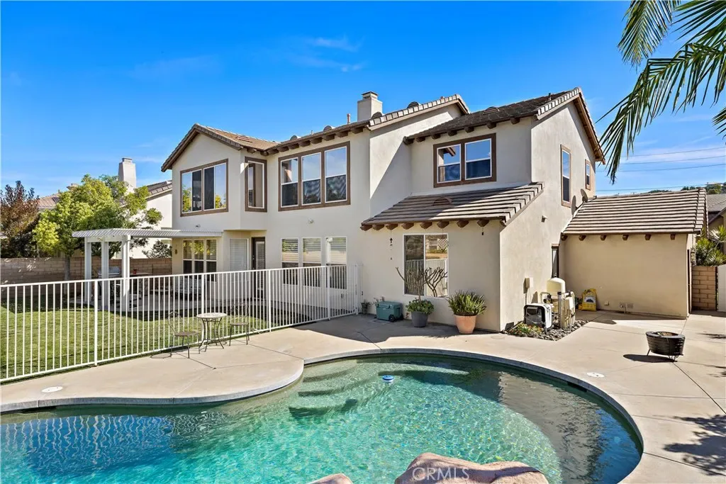 Situated on one of the largest lots in the community, this beautifully maintained estate offers an exceptional blend of space, comfort, and thoughtful design. With 5 bedrooms—including an expansive room that can serve as a bonus room—plus an additional downstairs room ideal for an office or den, and a built-in desk area upstairs, this home provides remarkable flexibility for work, study, and multi-generational living. Pride of ownership is evident throughout. The open floor plan features soaring ceilings and abundant natural light, creating a bright and inviting atmosphere. Upon entry, you’ll immediately notice the custom touches, including a gourmet kitchen equipped with stainless steel Wolf and Sub-Zero appliances, generous cabinetry, and a seamless connection to the family room with a built-in media center. A convenient downstairs bedroom and full bathroom—with direct access to the backyard—make hosting guests effortless, especially for those enjoying the sparkling pebble-tech pool. Upstairs, the spacious primary suite offers dual vanities and a large walk-in closet, complemented by generously sized secondary bedrooms. Additional upgrades include a newer tankless water heater, a water softener system, and well-maintained systems throughout. The expansive backyard is an entertainer’s delight, offering ample space to relax, dine, and enjoy the quintessential California lifestyle.