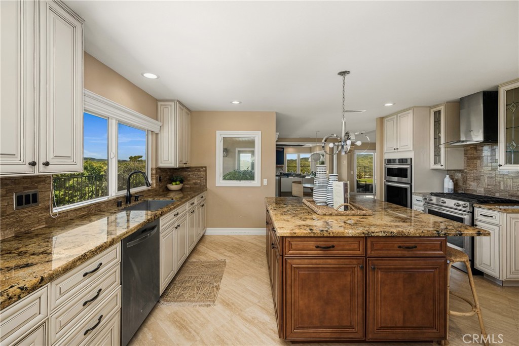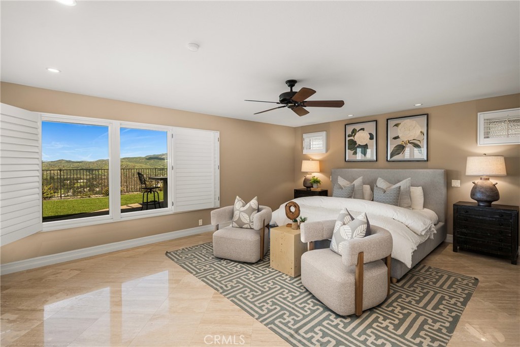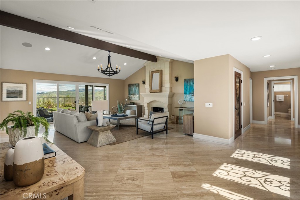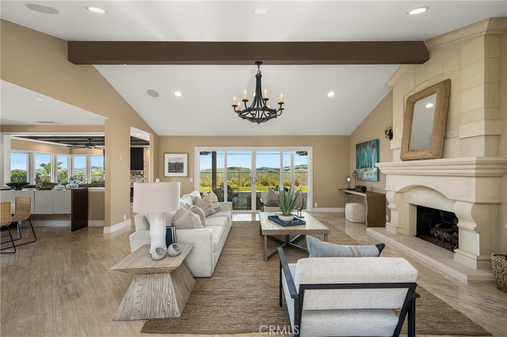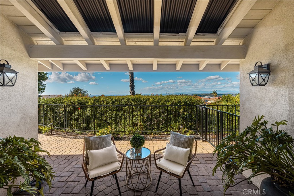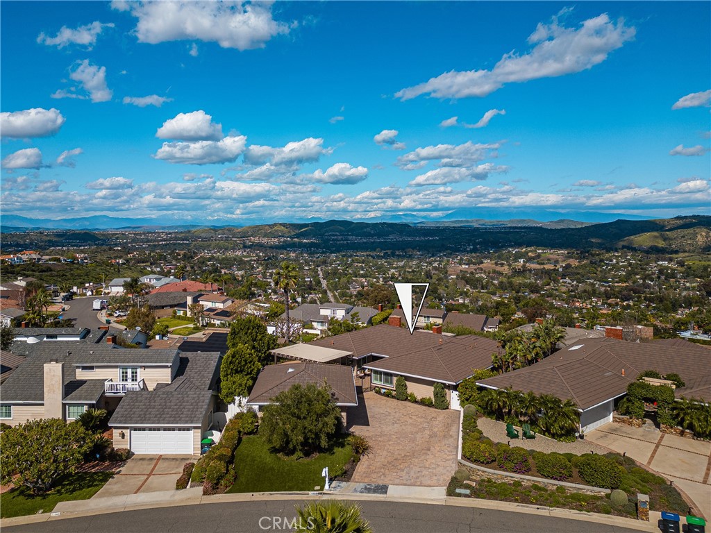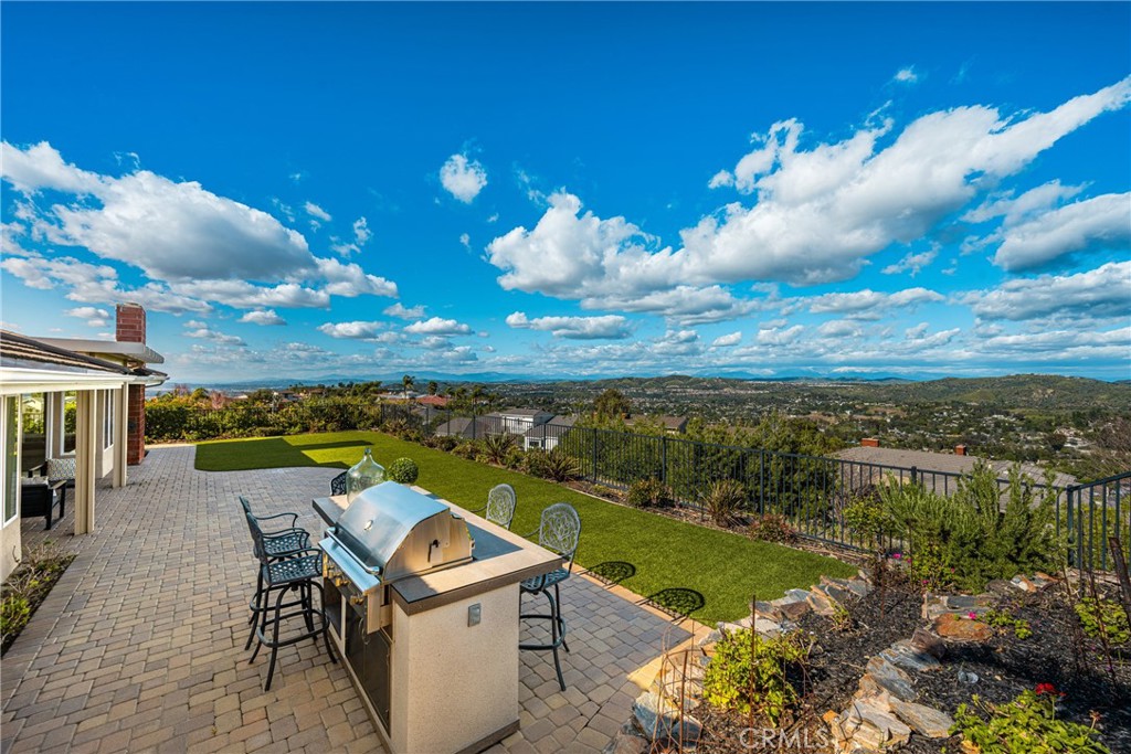 Don’t miss this RARE opportunity to own a meticulously upgraded hilltop stunner with breathtaking panoramic views. Set a atop one of the highest hills in East Orange on a quiet cul-de-sac of homes the views offer a sense of serenity that must be experienced to be fully understood. From snow-capped mountain peaks to unadorned rolling green hills to shimmering city lights to sunsets over the ocean…the views take the starring role from nearly every room in the house and sprawling 13,000 SF grounds. Set on one level with no interior steps, this sought-after John Lyttle built home has been reimagined with over $400,000 in upgrades so the next lucky owner can ease right in and enjoy the luxury living from day one. Outstanding features include an iron double-door entry which opens to a bold, resort-like interior defined by beamed ceilings and travertine floors. A Great Room with stone fireplace and a wall of glass doors opens to the Chef’s Kitchen equipped with gas range, double ovens, walk-in pantry, dedicated breakfast nook and island with breakfast bar. Living spaces flow effortlessly from kitchen to dining room to the inviting family room surrounded by serene mountain views and warmed by a second fireplace with window seats. Sliding glass doors from dining & living spaces blur lines between inside and out to sprawling grounds upgraded with warm pavers and lush, low maintenance turf. Whether you’re hosting at the built-in BBQ/bar or relaxing under one of the covered patios or playing a game of corn hole or croquet, the views steal the show. And if gardening delights, citrus trees & a dedicated garden area awaits your personal touch. Additional highlights include an enormous primary suite boasting three closets (including two walk-ins,) soaking tub, tiled shower and dual vanities. Two additional bedrooms feature built-in desks and cabinetry, perfect for a home office or student setup, and a beautifully remodeled bath. The three car finished garage includes newly installed cabinetry & attic storage with pull-down ladder. This highly sought after neighborhhod sits above the famed Orange Hill restaurant and is blocks from Pacific Ranch Market with wide, quiet streets plus hiking trails, tennis & pickleball courts included in the low HOA dues. Whether you are soaking in majestic, ever-changing sunrises and sunsets or enjoying walks through this remarkable neighborhood, this rare hilltop estate offers a legacy of luxury and a view that simply cannot be replicated.