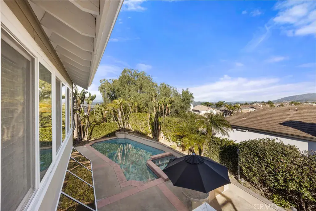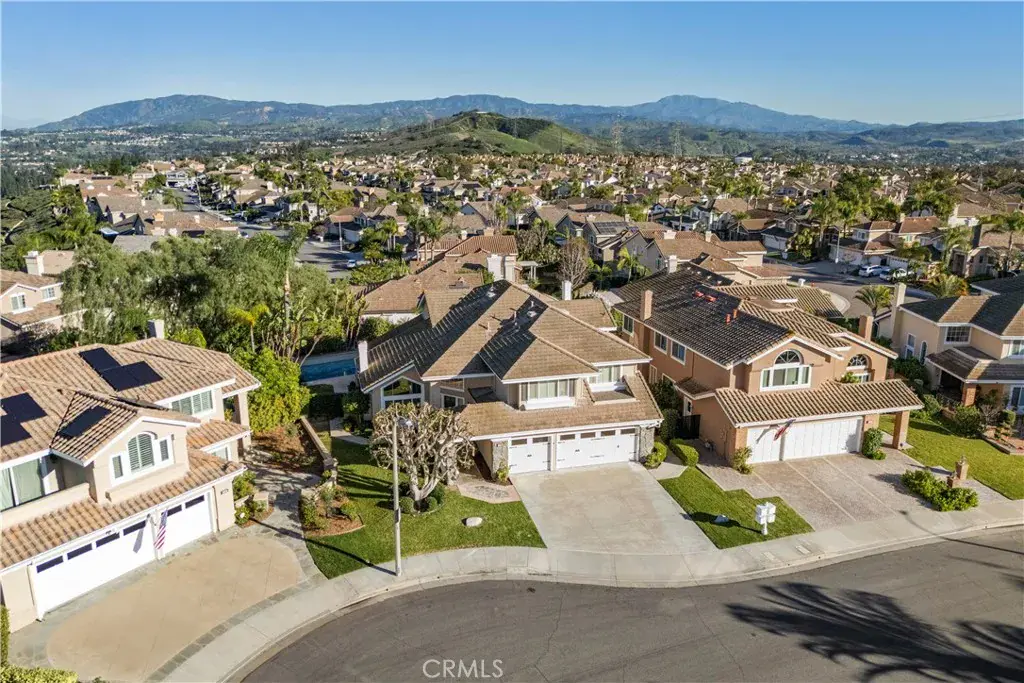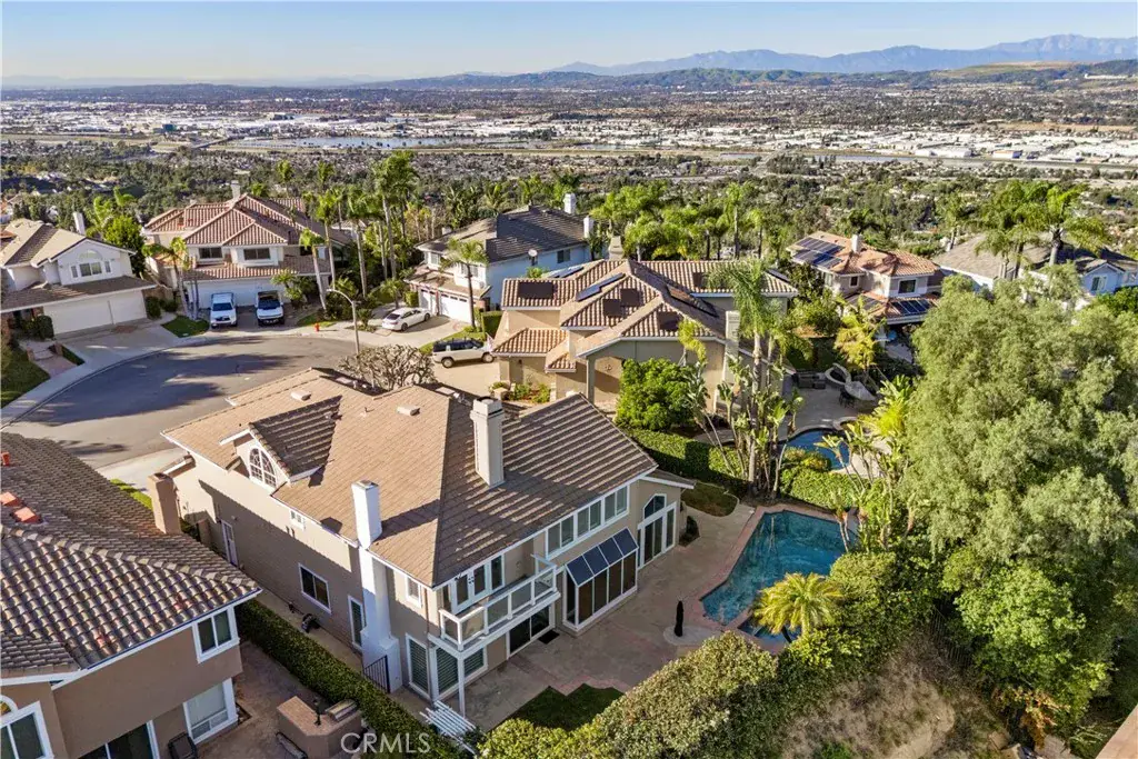 Don’t miss this Elegant, Modern residence in Orange Hills’ coveted Belmont Estates. As you enter the home, you’re greeted by vaulted high ceilings, a gorgeous staircase and marble floor entry. Offering an open Floor plan with recessed lighting, plantation shutters, 3 fireplaces, you will appreciate a full bath and bedroom downstairs, a huge family room that opens to a refreshing pool and spa, backyard with built-in barbecue and umbrella! Perfect for entertaining, the kitchen has a large island with lots of counter space and a sunny breakfast nook. Featuring Three bedrooms upstairs, the primary suite offers double walk-in closets, dual vanities and dual fireplace, plus an office retreat with a view! Approximately 3500 sq. ft. of living, with abundant natural light, newer paint, newer carpet. The attached 3-car garage includes an electric charger and full wall covered shelves throughout, even a wall mirror for private workouts? Very quiet and desirable location in a cul-de-sac, you’re up in the hills but enjoy easy access to freeways, shopping, entertainment, hospital and prestigious schools (Canyon High and Villa Park).