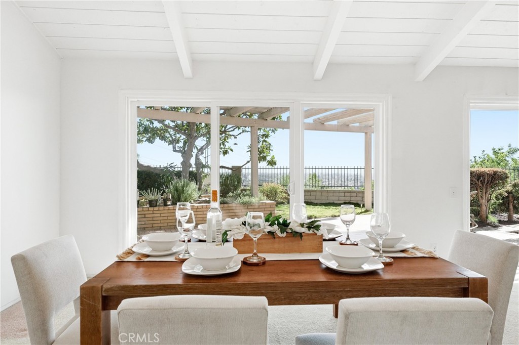 Step through the front door and you are immediately greeted by breathtaking horizon views that set the tone for the home’s incredible potential. The welcoming entry flows into an oversized living and dining space highlighted by walls of glass and captivating vistas. The adjacent kitchen with breakfast nook overlooks the backyard, pool, and endless views beyond — offering the perfect footprint for a stunning future transformation.