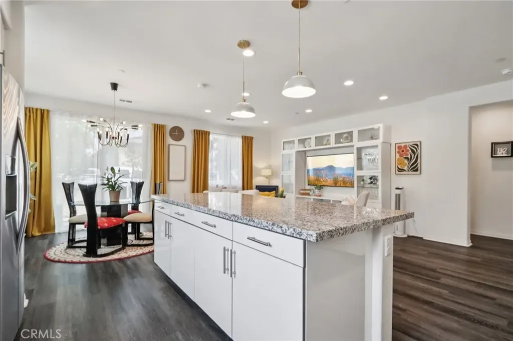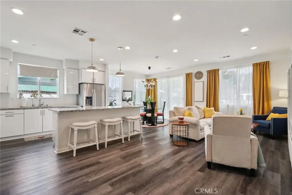 Ideally positioned as a private end unit and attached on only one side, the home enjoys an abundance of natural light and the feel of a detached single-family residence. An inviting hallway draws you into the open-concept great room that seamlessly blends the kitchen, dining, and living areas. The chef-inspired kitchen features a large center island perfect for entertaining, while the dining space opens to a charming patio, ideal for indoor-outdoor living.