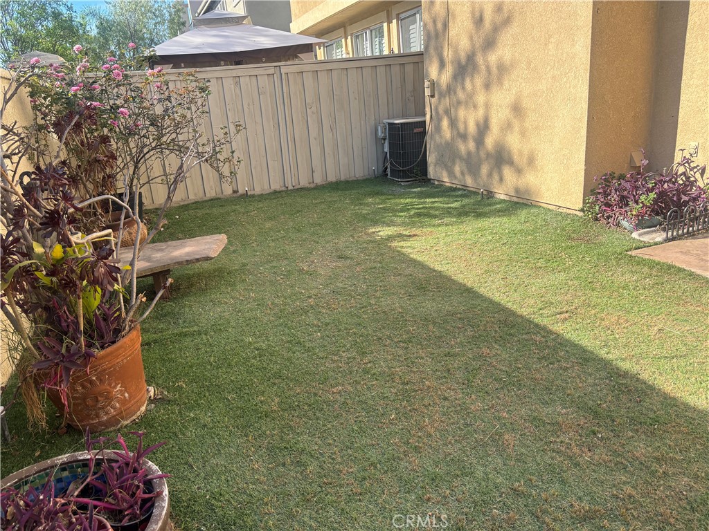 Desirable gated community of Cambridge II featuring a townhome-style condo with a private backyard and low-maintenance artificial turf. The spacious living room offers laminate flooring and a cozy fireplace, creating a warm and inviting atmosphere.