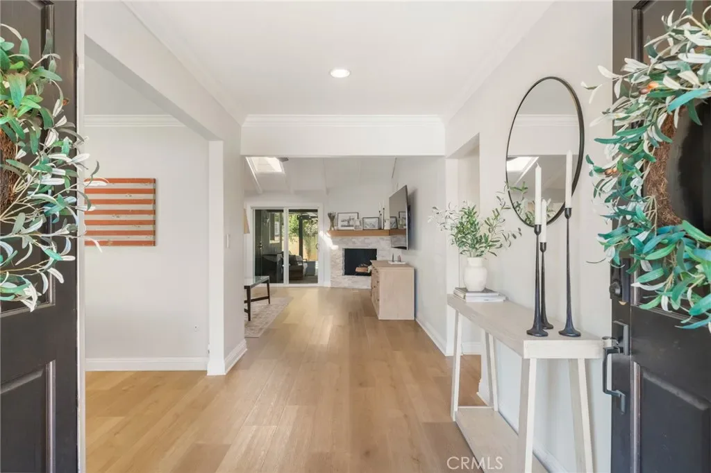 Nestled on an expansive 8,000-square-foot lot in the heart of Orange, this beautifully updated single-story residence offers a rare blend of comfort, style, and effortless Southern California living. Spanning approximately 2,300 square feet, the home features four bedrooms and two and a half bathrooms, thoughtfully designed with an open-concept floor plan that creates a natural flow between the main living spaces. From the moment you arrive, the home’s inviting curb appeal sets the tone for what lies within. Inside, the interior has been tastefully updated throughout, featuring luxury vinyl plank flooring, plantation shutters, and a bright, welcoming atmosphere filled with natural light. The living room is highlighted by beautiful vaulted ceilings and a classic wood-burning fireplace, creating a warm and inviting focal point that adds both character and charm to the space. The bathrooms have been recently updated with clean, modern finishes and Moen fixtures, elevating both comfort and style. The spacious primary suite offers sliding doors that open directly to the backyard, creating a seamless connection to the outdoor living areas. The home’s layout is ideal for both everyday living and entertaining, with open gathering spaces that flow effortlessly toward the backyard. Functionality is equally well considered, with a convenient interior laundry room and plenty of additional storage throughout the home, providing both practicality and ease for everyday living.Step outside to your private outdoor retreat, where a sparkling in-ground pool with newer equipment serves as the centerpiece of the backyard. The generous lot offers multiple areas to relax, entertain, or garden, complemented by mature fruit trees and ample space for outdoor enjoyment. The property also features RV parking and a detached two-car garage, offering exciting possibilities for a future ADU, guest house, or private workspace. Additional upgrades include fully paid-off solar, along with updated major systems throughout the home, providing both comfort and energy efficiency. Located in one of Orange County’s most charming and historic cities, Orange is beloved for its character, community feel, and central location. Residents enjoy the vibrant atmosphere of Old Towne Orange with its historic plaza, boutique shops, coffee houses, and renowned restaurants, along with excellent schools, nearby parks, and convenient access to major freeways.