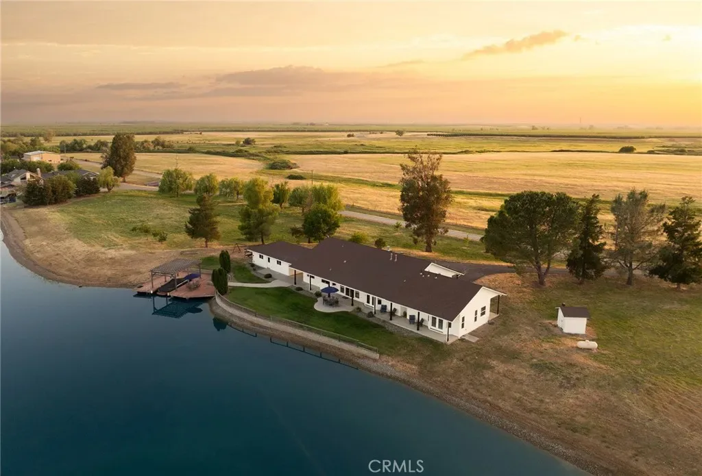 This incredible ski lake property offers the perfect blend of privacy, recreation, and breathtaking natural beauty, all set on 10 very private acres. From the back of the home, take in panoramic lake views, while the front showcases sweeping mountain and open country vistas. Whether you’re looking for a full-time residence or a peaceful getaway, this lakefront retreat offers swimming, waterskiing, paddleboarding, fishing, or simply relaxing by the water. Enjoy access to the lake with your own private fixed dock, complete with a boat lift. The beautifully updated 3,007 sq ft home features 4 bedrooms, including two spacious primary suites, 3.5 bathrooms, two living areas, and a dedicated office with built-in storage. Fresh exterior paint gives the home a clean Mediterranean-inspired look, while large windows frame the lake views. A cozy family room with a freestanding wood stove adds warmth and charm. The kitchen offers lake views, freshly painted cabinetry, recessed lighting, stainless steel appliances, solid surface countertops, and a large peninsula with bar seating—ideal for entertaining. The main primary suite features French doors to the patio and lake, dual walk-in closets, and a dual-sink vanity. Down the hall are two guest bedrooms and a bathroom with dual vanities and a separate shower area. Privately situated, the second primary suite offers its own entrance, lake access, a walk-in closet, and a remodeled bathroom with dual sinks and a walk-in shower—perfect for guests or multi-generational living. Additional features include brand-new flooring in main areas, owned solar, two HVAC units, updated lighting and ceiling fans, and an oversized three-car garage with space for a boat. There’s also room for RV parking or future expansion, plus a variety of mature fruit trees. The private ski lake, shared with only three other properties, includes a slalom course for tournaments—offering a rare opportunity for competitive and recreational water sports. Conveniently located near I-5 with easy access to restaurants and shopping, and just a couple of hours from the Bay Area, this rare property offers an exceptional lifestyle of serenity, beauty, and adventure.