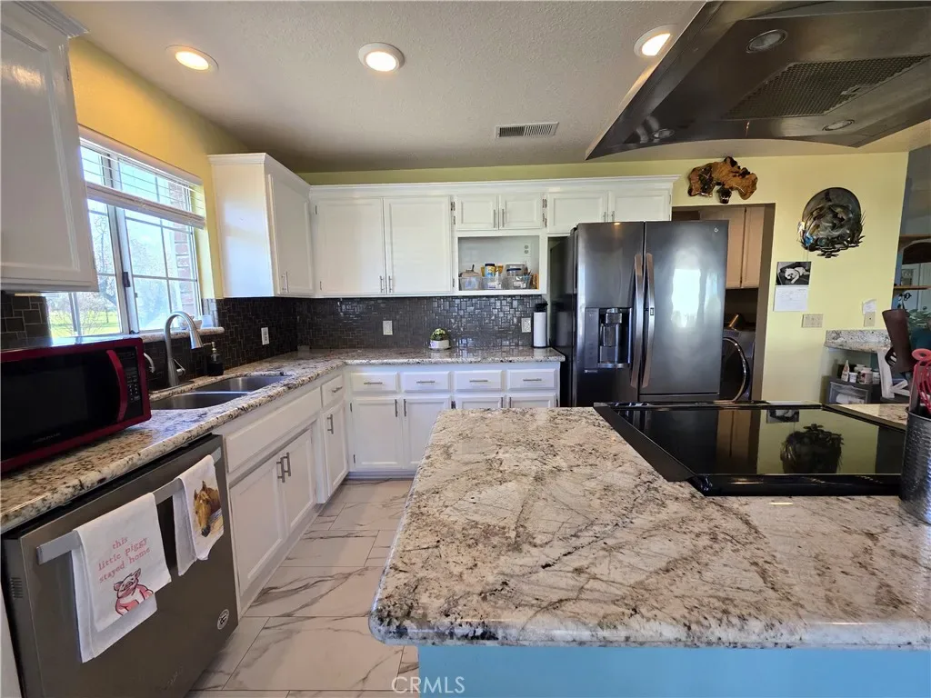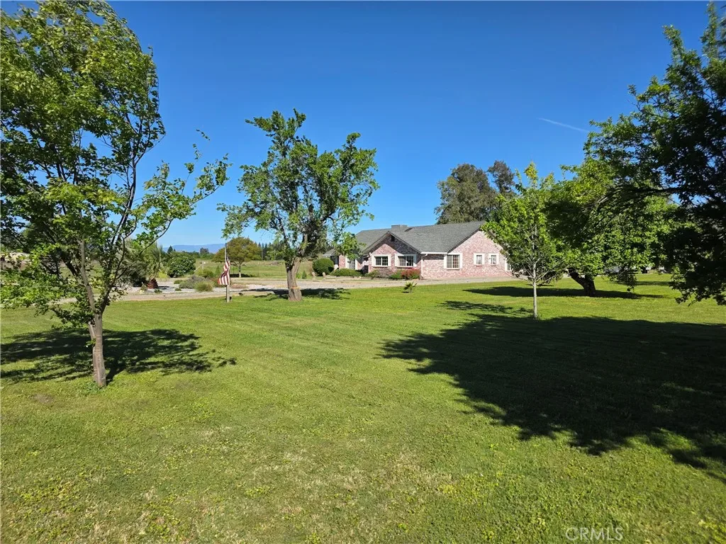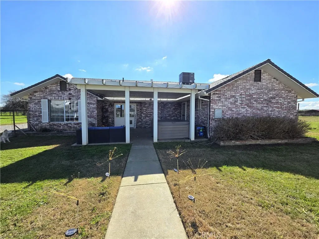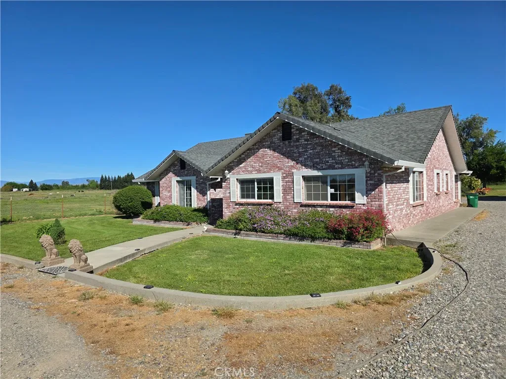 Set on 5.44 usable acres in a prime country location, this beautifully updated custom home offers refined rural living with space for horses, cattle, goats, and more. The 3-bedroom, 2-bath residence features over 2,200 sq ft of thoughtfully designed living space, including two expansive living areas—one ideal as a game room, media room, or additional entertaining space. The remodeled kitchen showcases granite countertops, custom cabinetry with pull-outs, stainless accents, and a sun-filled dining nook overlooking the covered patio. Both bathrooms have been tastefully updated, and the spacious primary suite offers direct patio access for seamless indoor-outdoor living. Recent upgrades include a new roof, new HVAC, newer plumbing and plumbing fixtures throughout, and a new pellet stove for added comfort and efficiency. The all-brick ranch-style exterior complements the fully fenced pasture, horse coral stall and cover, horse training pen, oversized detached 2-car garage, RV hookups, and Orland Users Water District service—creating an exceptional blend of functionality, and peaceful country living. Also don’t miss the array of fruit trees including pomegranate, plums, pears, lemon, apple, apricot, persimmon, and pistachio. Buyers to verify any and all information to their satisfaction.