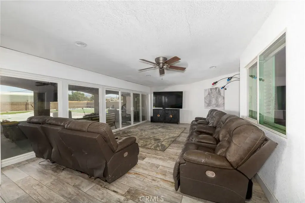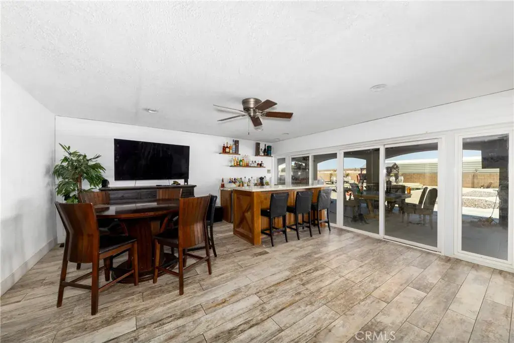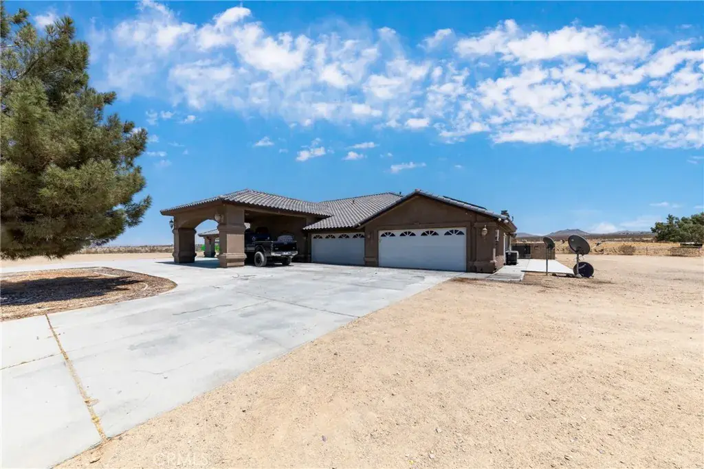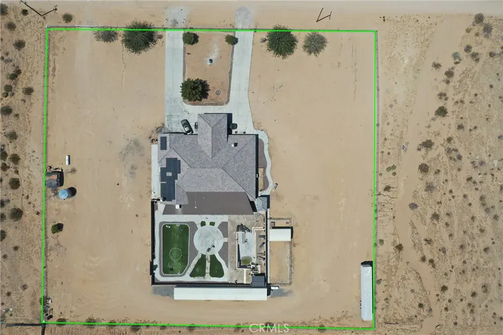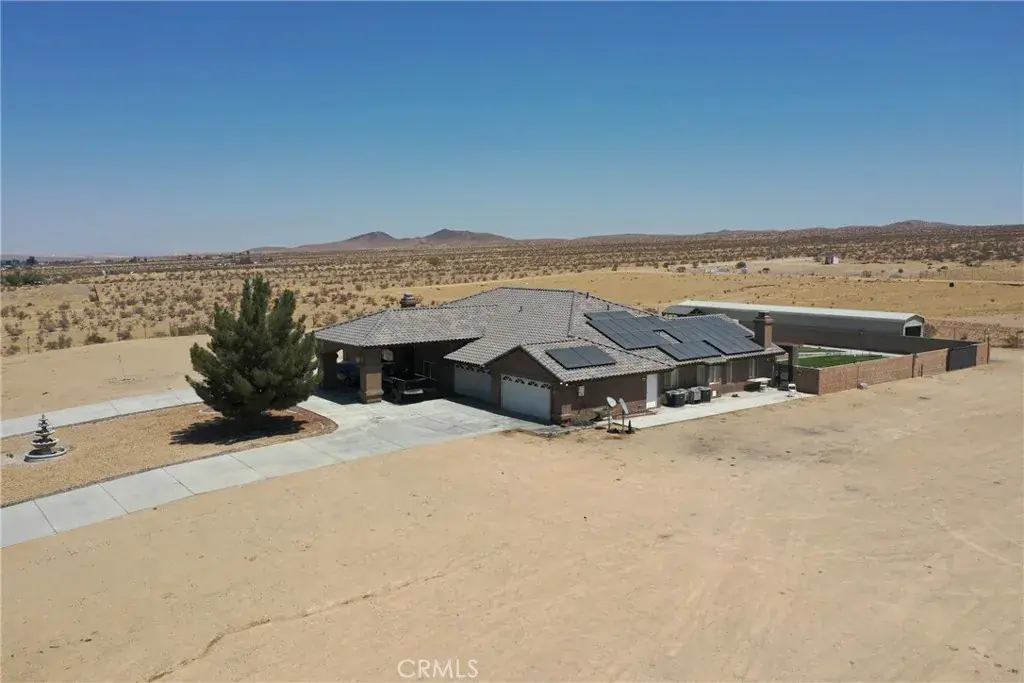 Private Gated Oro Grande Estate with Mojave River Views & Exceptional Style! This extraordinary custom residence sits on over 2 private acres and offers luxury, privacy, and breathtaking Mojave River views. Enter through the gate leading to a 4-car garage and step inside through stunning ornate iron doors to discover a home designed for both elegance and entertaining. The spacious 5-bedroom, 5-bath floor plan features a chef’s kitchen complete with a large center island, wrap-around breakfast bar, and top-quality finishes. Enjoy formal living and dining areas, as well as a large open family room with a custom built-in entertainment center. A beautiful see-through fireplace enhances the inviting ambiance across the main living spaces. A highlight of the home is the impressive bonus/game room, approximately 700 sq. ft., featuring a custom quartz wet bar, shiplap accents, and access to the backyard—perfect for gatherings and fun. The primary suite is a luxurious retreat offering a raised-hearth fireplace, walk-in wardrobe room, and private backyard access secured with exterior blind shutters. The adjoining spa-style bath boasts a soaking tub, dual vanities, and a custom tile shower with three showerheads. Four additional oversized bedrooms include a junior ensuite—ideal for guests or multi-generational living. Each bedroom enjoys its own bath access, offering a thoughtful split-floor plan for ultimate privacy. Step outside to a resort-style backyard showcasing a stunning pool and spa with cascading waterfalls, fire bowls, and a fully equipped outdoor kitchen and bar. Additional amenities include a pool bath with heating and A/C, custom tile shower, and outdoor shower, all enclosed for privacy. The property also features a 70’ x 14’ steel building with two roll-up doors, RV hookups and clean-out, a private well, covered dog runs, and ample space for horses or recreational use. With designer finishes, generous living areas, and incredible outdoor amenities, this estate is the perfect blend of sophistication and comfort. Schedule your private tour today!