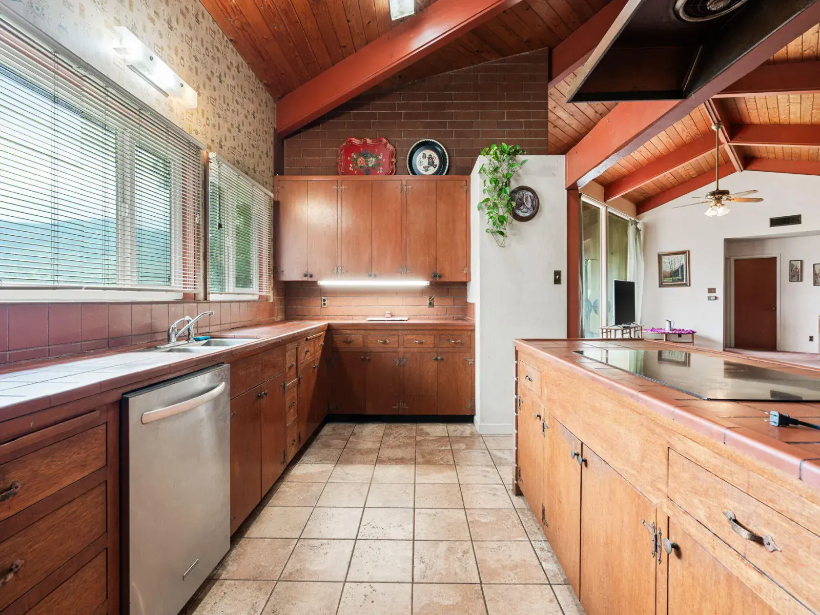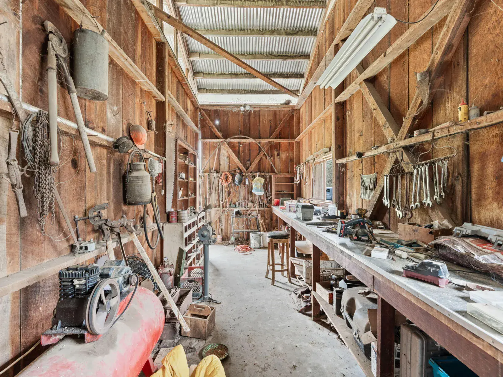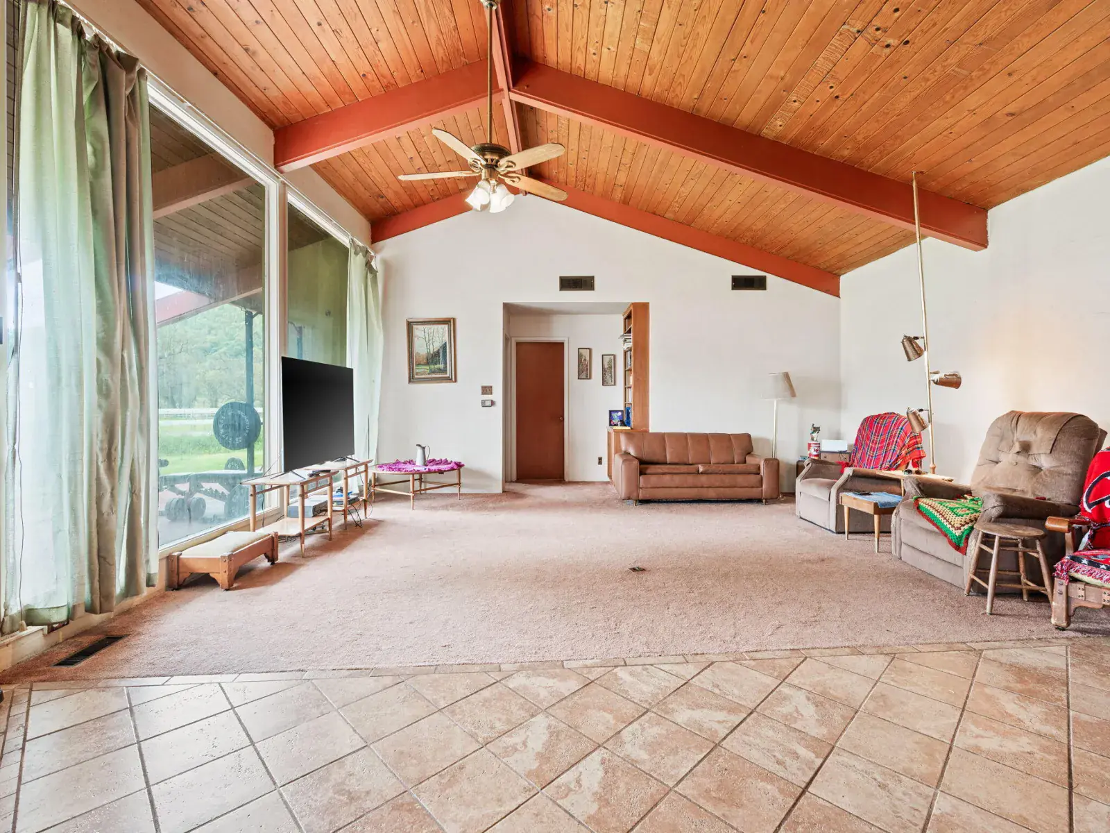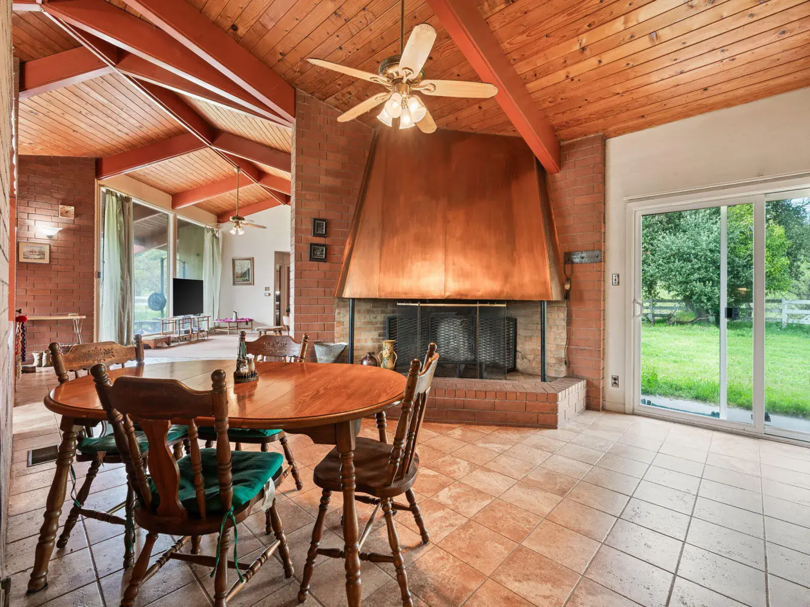 Additional property features include a fenced horse area, a working holding pen for branding, two barns, a tack room, a meat fridge for beefing cattle, five wells, and much more with plenty of acreage. The primary home is full of character, featuring a wrap-around kitchen, vaulted ceilings, a striking copper-hooded fireplace, two true master suites, and a large picture window framing panoramic views. While the home is ready for updates, it provides a solid foundation to personalize and modernize.
