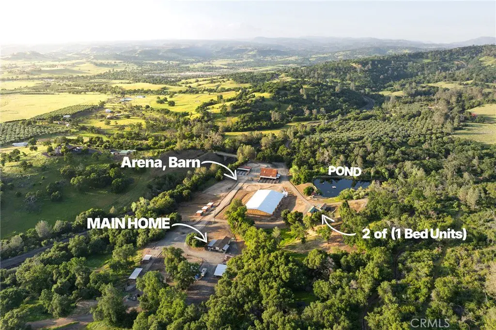 Silver Ridge Stables sits on 277 acres of land, much of it on the top of Table Mountain, currently accessed by foot and horse only. It’s the last property on the street, offering privacy and serenity that’s hard to find. The lower portion of the ranch includes a lighted and covered arena, with views overlooking the northern Sacramento Valley, two wooden barns, which include an office area, hay storage, tack room and 15 individual tack lockers. There are 9 horse runs with covers that come off the two barns and 8 additional paddocks with run in shelters and individual water troughs. The ranch also includes a 3 acre fenced pasture and around 8 acres of old olive orchard, also fenced. Trails are cut through out the property and orchard and you have direct access to enjoy several thousand unfenced acres on Table Mountain. Silver Ridge includes three residences, each with great views. The main residence is a remodeled three-bedroom manufactured home with an enclosed front porch and a covered back porch. It also includes an RV parking area with full water/power and sewer hookups, a carport and storage. There are two other newer one bed/one bath manufactured units, currently connected by a breezeway. They overlook a large pond and the riding arena, as well as the valley views. Potable water comes from 3 springheads, established in 1910. A Generac provides emergency power for homes and barn. The lowest edge of the property is bordered by train tracks. It’s less than a half hour to both Chico and Oroville for convenient access to shopping and dining. Sacramento is an hour and a half drive and Tahoe around 3 hours. This is a one of kind property offering an opportunity to own and enjoy a truly special setting in northern California!