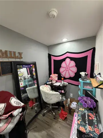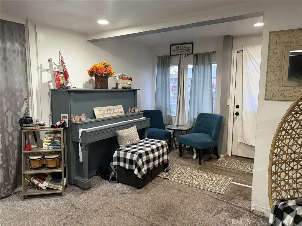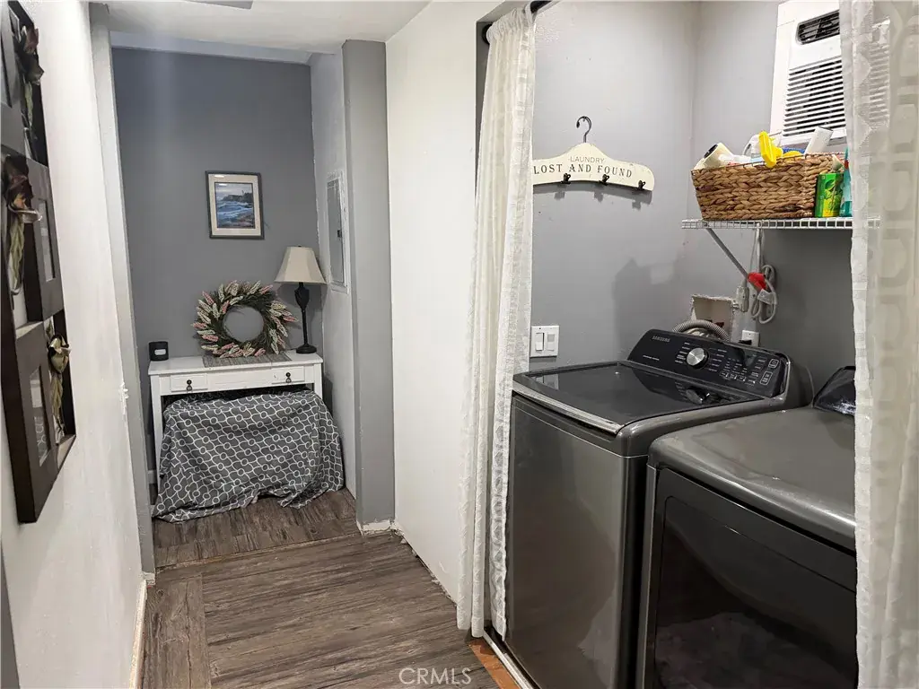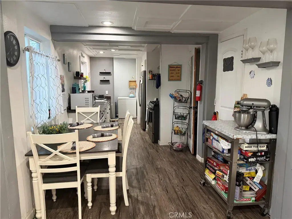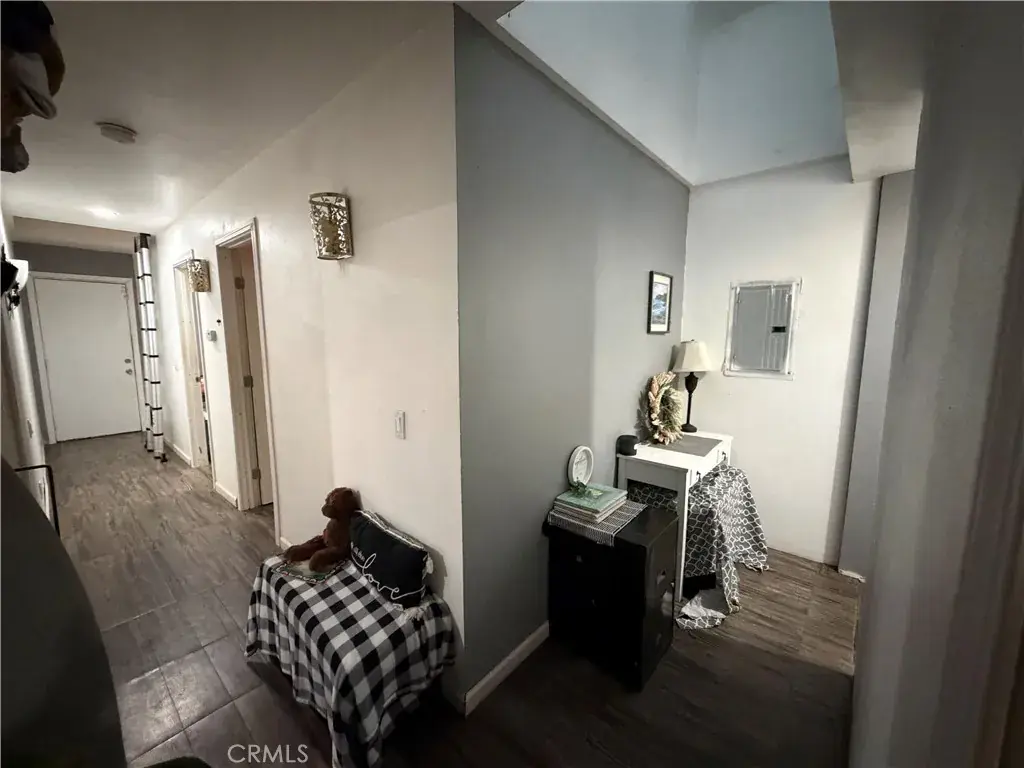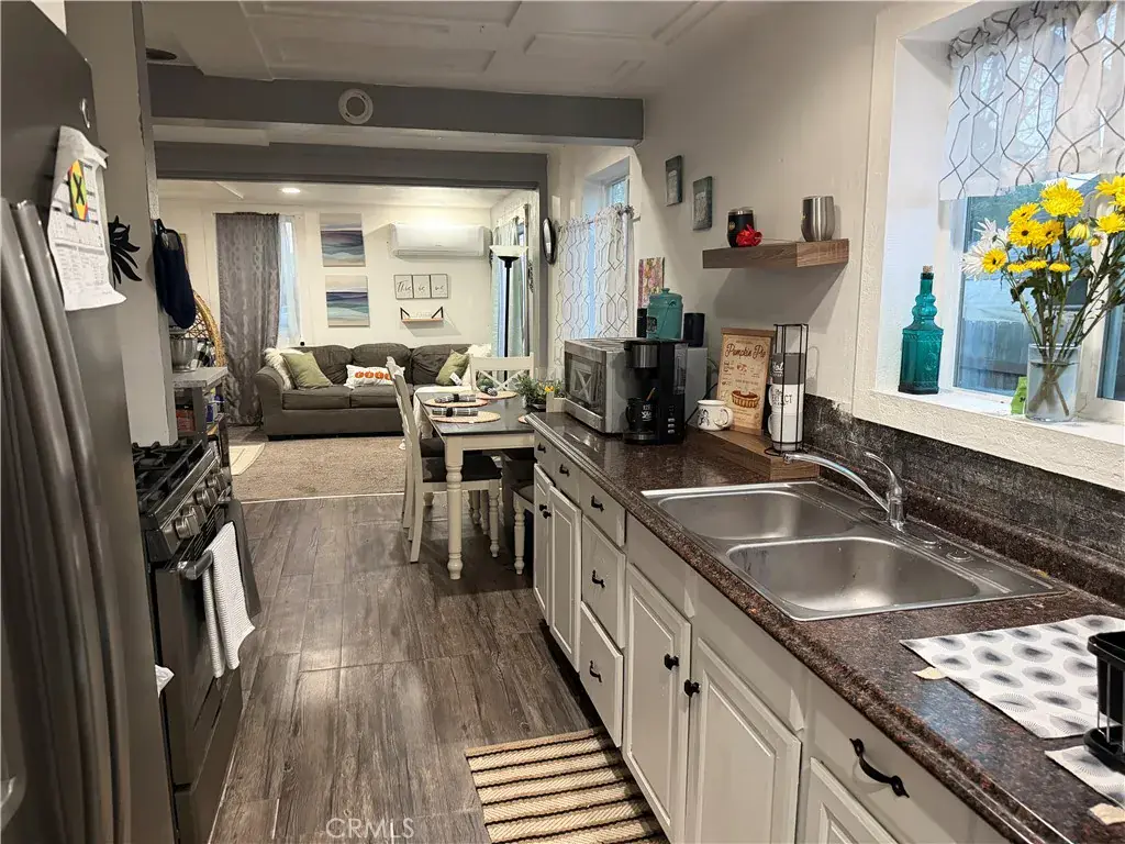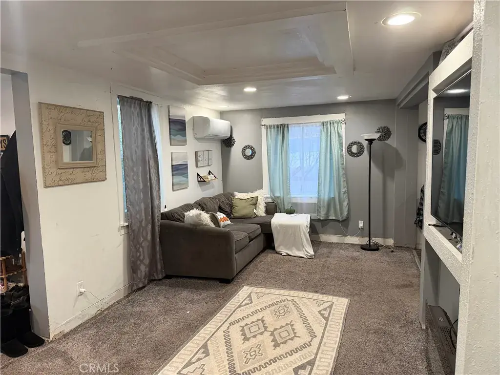 Step into a cozy living area anchored by an electric fireplace, creating the perfect spot to unwind. The galley-style kitchen offers efficient flow and everyday convenience.