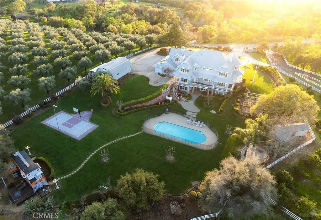 Welcome to 3723 Foothill Blvd, Oroville — a breathtaking 7,800 sq. ft. estate set on 20 Acres known as Olive Branch Ranch. Thoughtfully crafted by Better Builders under the direction of John Starr, this remarkable residence blends refined luxury with timeless craftsmanship. Designed as a place where generations gather, every detail reflects intention, quality, and enduring beauty. At the heart of the home is a grand chef’s kitchen that flows seamlessly into the family room, creating an inviting space for everyday living and entertaining. Formal living and dining rooms offer a generous scale for hosting holidays and special occasions. Upstairs, the primary suite is a private sanctuary, showcasing sweeping views of the foothills, Table Mountain, the Oroville “O,” and the distant Coastal Range. The suite features an expansive walk-in closet, custom built-ins, and a spa-inspired en-suite bath designed for relaxation. Three additional bedrooms, a versatile bonus room ideal for a hobby space or homeschool area, and a full guest bathroom complete the upper level. The lower level functions as private guest quarters, offering a game room, kitchenette, and direct access to the Olympic-size pool — perfect for extended stays or entertaining. Set on 20 acres, the grounds are equally impressive, offering privacy, functionality, and lifestyle amenities. The estate includes a 3,200 sq ft shop, fenced garden, micro orchard, full basketball court, and a scenic 1.5-acre pond. One of the property’s most distinctive features is the fully restored Rio Grande train caboose, thoughtfully converted into a charming guest retreat. Overlooking the pond and landscaped surroundings, the caboose includes a wood stove, air conditioning, a full bathroom, a private deck, and original working railroad lights — a truly memorable space for guests. The property is fully fenced with cross-fencing for livestock, a chicken mansion with exterior egg access, multiple storage buildings, and an equipment shed, offering both beauty and practicality. A rare combination of elegance, craftsmanship, and lifestyle opportunity, Olive Branch Ranch represents a truly exceptional Northern California estate.