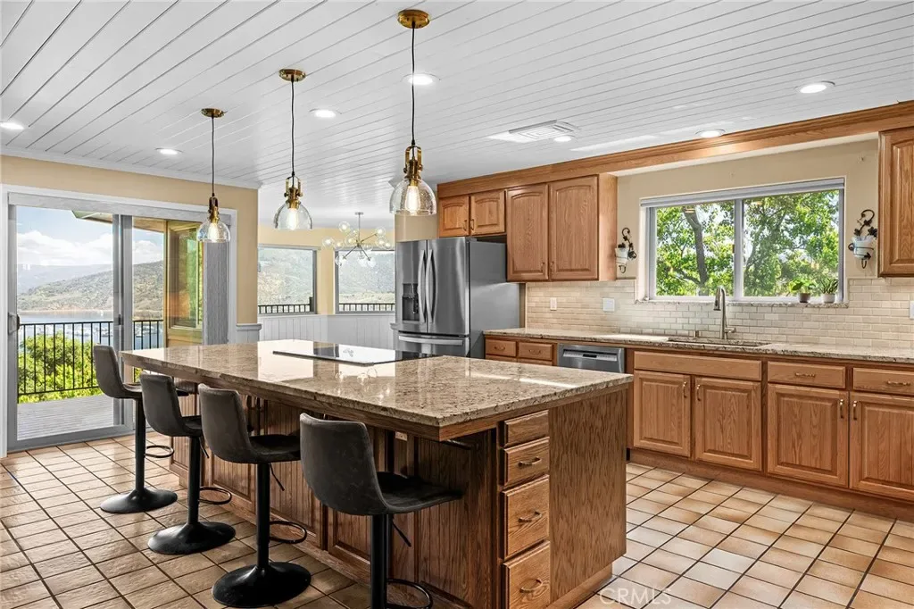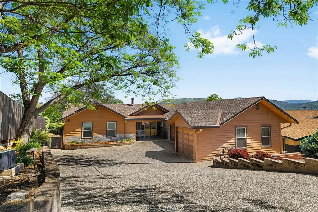 Enjoy stunning lake views in this rare gem—an exceptional ABC Cedar CUSTOM built home offering character and craftsmanship. Showcasing exceptional detail, this property features custom woodwork throughout and a striking stone fireplace that anchors the living space with warmth and charm. Thoughtfully paired with modern comforts, the home offers fully owned solar, newer HVAC, roof, windows, and updated appliances. Over the years, the seller has carefully enhanced the home with updated flooring, fresh paint, and more—always preserving its original charm and timeless appeal. The main level welcomes you with an immediate sense of space and light. As you enter, you’re greeted by a spacious living room with breathtaking lake views that continue seamlessly through the kitchen, dining area, and primary suite. The kitchen has been tastefully updated with newer cabinetry, countertops, and upgraded appliances, offering both style and functionality. A custom laundry room adds convenience with a full wall of pantry storage Sidekick (full size) refrigerator and freezer plus additional counter space. The primary suite is beautifully updated, featuring a step-in shower, double vanity, and a generous walk-in closet. Downstairs, the home lives like a second residence—complete with additional bedrooms, a full bathroom, living room, second laundry area, and an expansive media room featuring a kitchenette and projection theater with big screen. This setup is ideal for multi-generational living or hosting guests with ease. Step outside to an expansive back deck designed to take full advantage of the stunning lake views and sunshine—perfect for relaxing or entertaining. In addition, the home offers abundant storage throughout, complete with a workshop and a spacious three-car garage—perfect for hobbies, projects, or extra space. This is truly a must-see home that offers space, flexibility, and unmatched character plus upgrades such as a complete whole house vacuum system serving both levels, hardwood floors on the main level, built in cabinetry/workbench in garage, home generator and so much more. Come experience the beauty, comfort, and lifestyle this home has to offer—just minutes from beautiful Lake Oroville, where endless outdoor adventures and unforgettable moments await.