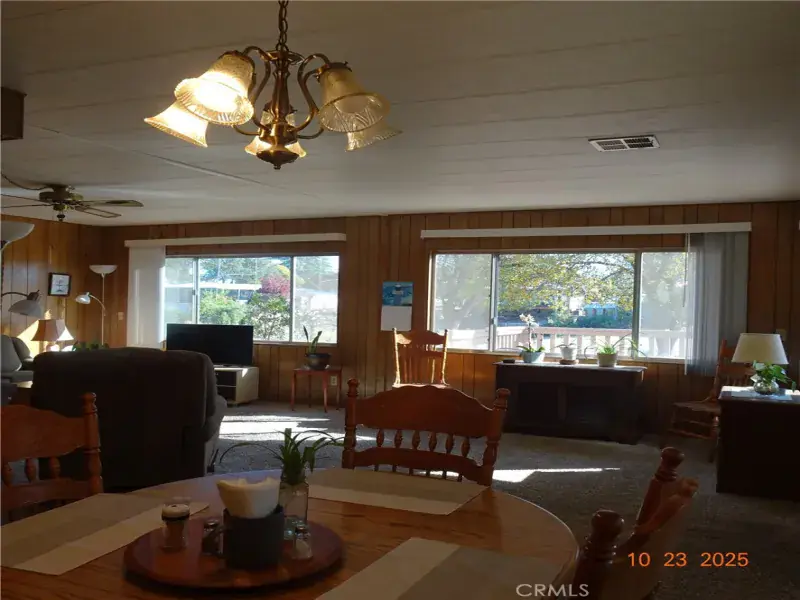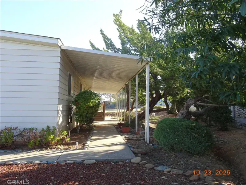There is a small deck, partially covered, overlooking said open space, partially fenced yard, nice landscaping. Living room has two large windows that let in all the light, and provide nice view. carport and small tool shed.