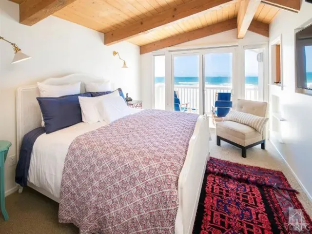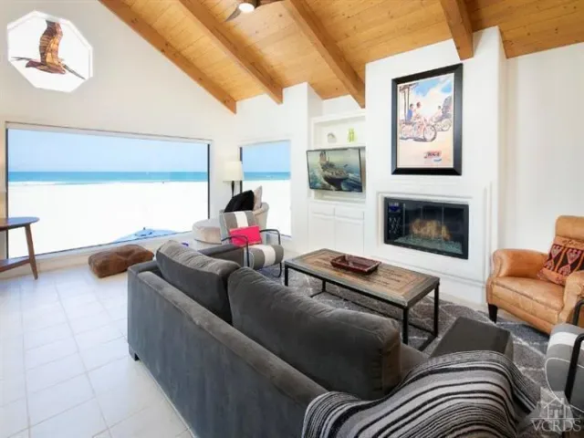 Villa Playa offers stunning beachfront living with latte-colored sand, blue skies, ocean views, and offshore islands.First floor: Two beachfront bedrooms (one king, one queen), a large bathroom with walk-in shower and double sinks, a full laundry room with extra refrigerator, linens and beach towels provided, plus a porta-crib and stroller. A large closet holds beach sandals and wetsuits. The garage includes a ping-pong table, beach chairs, kites, four bicycles with helmets, and sports equipment.Second floor: Expansive ocean and Channel Islands views, a spacious living room with high beamed ceilings, picture windows, and ample seating. A large dining table seats 12, with an adjacent balcony and binoculars for dolphin and whale watching. The fully equipped chef’s kitchen features stainless appliances, ample cookware, coffee makers, blenders, condiments, and seasonings. Also on this level are a powder room and a large family room with sleeper sofas, wet bar, games, books, toys, and TVs. Lifeguard station nearby (seasonal).Third floor: Luxurious master suite with king bed, private balcony with chaise lounges, and a spa-style bath with walk-in shower, jacuzzi tub, and double sinks.Additional features include a gas barbecue, five flat-screen TVs, and a fully furnished layout. Pet-friendly (up to 30 lbs, fee applies). No smoking.1 Year lease.