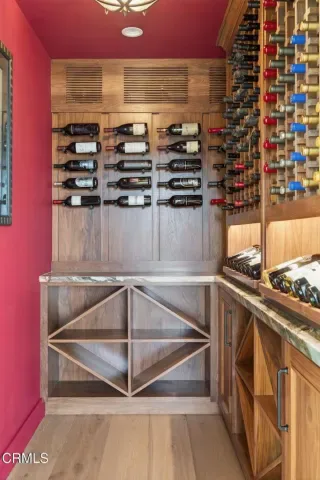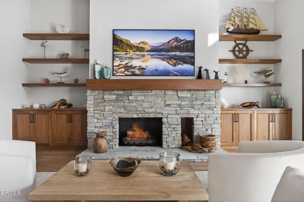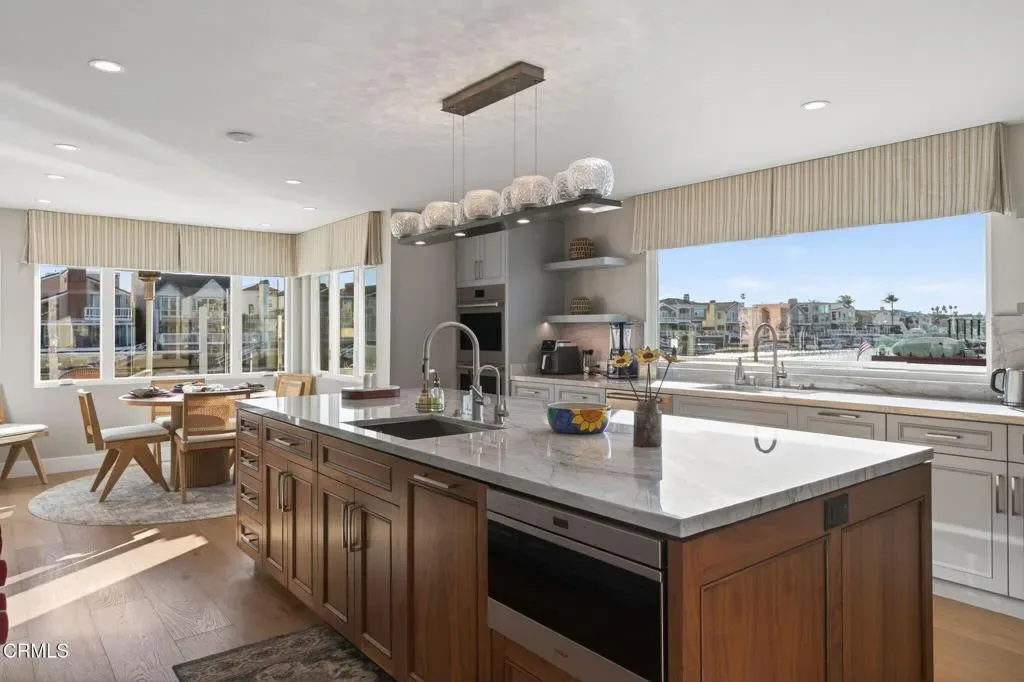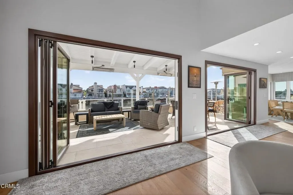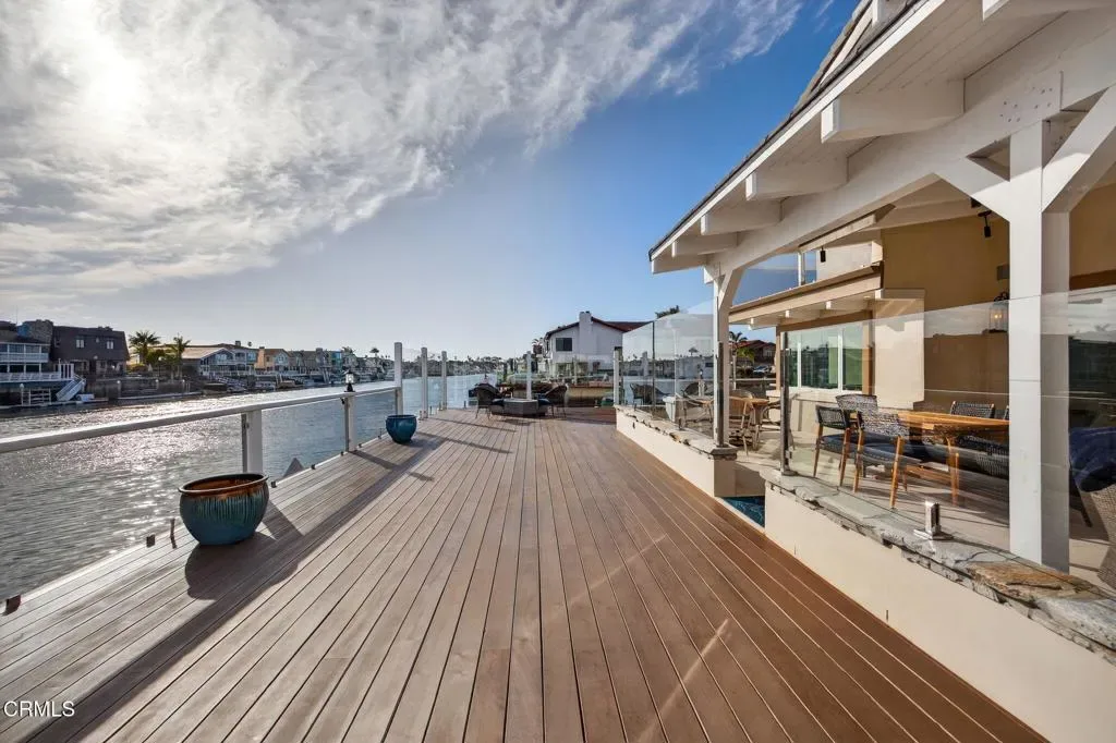 One of the most stunning homes in the Marina with endless water views! Perfectly positioned on a premier corner point lot along a highly desirable secondary wide channel, this extraordinary waterfront residence offers two expansive boat easements (approx. 130′ & 85′) ready to accommodate your yacht and all your water toys. A rare opportunity to own a truly one-of-a-kind 5-bedroom, 6-bath luxury waterfront estate with top-tier amenities throughout. Privately tucked at the end of a cul-de-sac with a deep driveway for additional parking, the home welcomes you through a serene courtyard entry into a seamless blend of coastal sophistication and indoor-outdoor living. Impeccable craftsmanship is showcased in the walnut-stained custom cabinetry, floating shelves, and gorgeous white oak flooring. The first level is designed for grand-scale entertaining, featuring open-spacious living room, a dramatic stacked-stone fireplace, and a designer wet bar complete with quartzite countertops, illuminated cabinetry, built-in ice maker, and double-drawer refrigerator. A walk-in wine room stores your finest collection. Accordion glass doors open to a spectacular covered waterfront patio with fireplace, built-in TV, and glass wind panels. Expansive wraparound IPE decking and a fire pit create the ultimate setting for sunset gatherings. The gourmet kitchen is a showpiece, appointed with premium Wolf stainless appliances, Sub-Zero refrigerator, striking quartzite countertops, oversized island with prep sink, abundant custom storage, and more marina views. Seaside dining overlooks the deck and tranquil channel. An additional spacious family room opens to a side deck, while the custom home theater–with large screen, built-in sound system–offers a true cinematic experience. A stunning floating wood staircase leads to the second level featuring five bedrooms, including three ensuite, four baths, and a laundry room. Each bathroom is an experience of designer tile and stonework! The grand primary suite captures shimmering channel views and sunsets from its private wraparound deck. Indulgent spa-like bathroom offering soaking tub, a beautifully designed walk-in shower, dual vanities, and exquisite marble and designer tile. One bedroom is currently styled as a private gym with specialty flooring. This is more than a home-it is a landmark waterfront estate designed for those who demand the very best in luxury, lifestyle, and location!