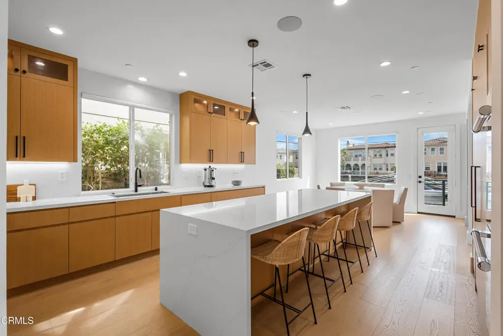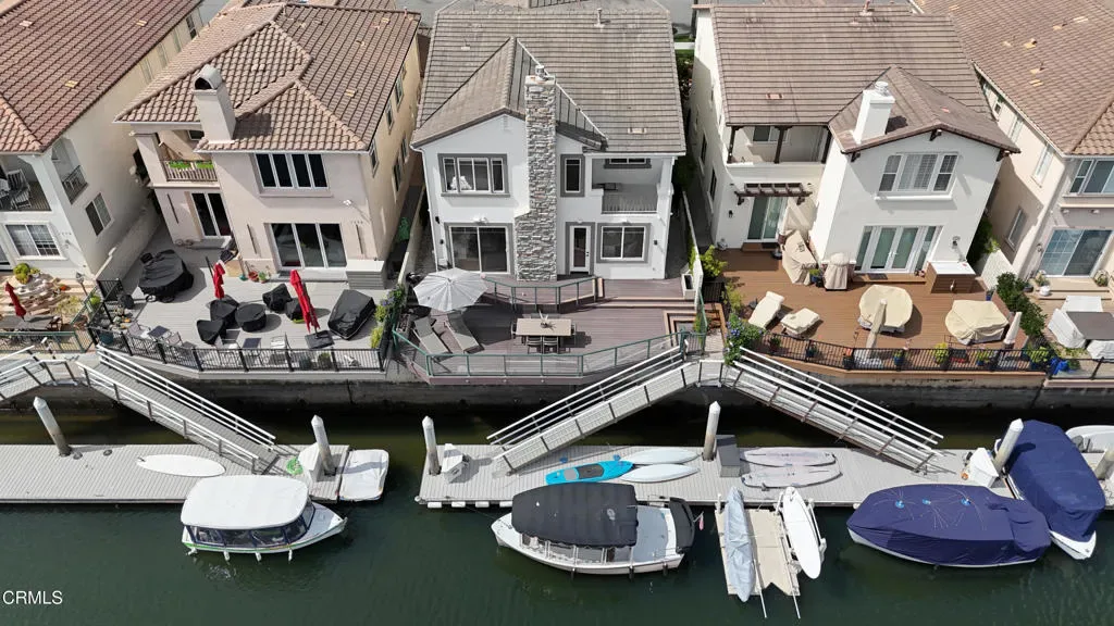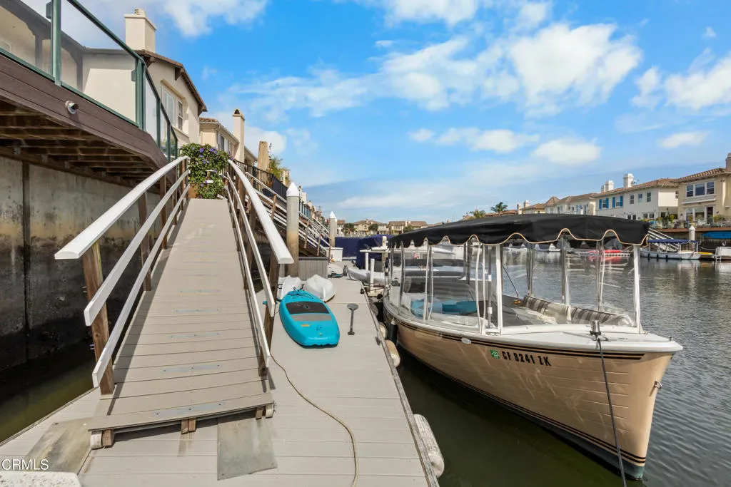 Welcome to Westport at Mandalay Bay, one of Oxnard’s most desirable waterfront communities in Ventura County. This beautifully renovated marina home offers a private 35-foot boat dock easement, eastern water exposure, and exceptional privacy with no public sidewalk behind the property. Enjoy the ultimate coastal lifestyle with direct boating access to Channel Islands Harbor and close proximity to Seabridge Marina, shops, restaurants, and nearby beaches.The backyard is designed for entertaining and relaxation, featuring a cantilevered Trex deck that maximizes outdoor living space while overlooking tranquil water views. It is the perfect setting for dining al fresco, hosting gatherings, or simply enjoying the peaceful marina setting. Scenic walking and biking paths run along the waterfront, and the beach is located just one mile away.Inside, the home offers a bright, modern, and sophisticated interior with wide-plank white oak flooring, custom cabinetry, smooth wall finishes, solid core doors, and detailed base and case moldings throughout. The gourmet kitchen is equipped with premium Thermador appliances, a quartz center island, and built-in single-door refrigerator and freezer, creating an ideal space for cooking and entertaining.The home features four spacious bedrooms, each with its own en-suite bathroom, including a convenient downstairs bedroom that is closet-ready. A large upstairs loft provides flexible living space perfect for a home office, den, or media room. The primary suite serves as a private retreat with a sitting area, walk-in closet, and a private deck overlooking the channel and surrounding mountains, with occasional snow-capped peaks visible during winter months. The spa-inspired primary bathroom includes a wet room with soaking tub, rain shower, handheld sprayer, and elegant black quartz and porcelain finishes.Additional highlights include a direct-access garage with epoxy flooring and built-in cabinetry, providing excellent storage for all your coastal lifestyle needs. Located just minutes from Seabridge shopping and dining, Hollywood Beach, Silver Strand Beach, and Channel Islands Harbor, this exceptional property offers a rare opportunity to own a luxury waterfront home with a private boat dock in Westport.