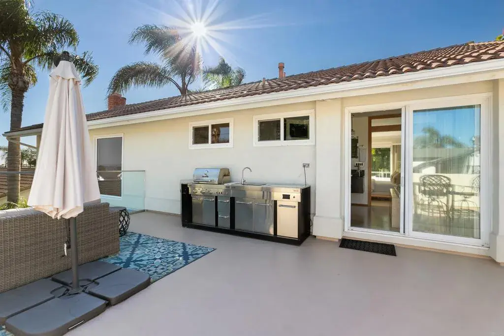 Views out to the bay, ocean, city, Coronado Bridge and Sea World fireworks are served up from this refined Pacifica home. In a nod to the location, this two story home nestled on a quiet cul de sac in the sought after Pacifica neighborhood of north PB artfully synthesizes West Coast Modernist design with tropical landscaping and contemporary influences. Flooded with natural light and sited on a large flat lot, this 4 BD/2.5 BA residence is minutes to the beaches and offers easy access to freeways and shopping. Featuring high-end finishes, an entertainers dream backyard anchored with a full tiki bar, fire pit and built-in grill area as well as 2 ocean view decks, one complete with a fire feature and built-in grill/kitchen allowing you to relax and chill after a day at the beach gazing at the star filled sky or watching the fireworks. The strategic use of windows and glass doors throughout the home shape the aesthetic, functionality, and connection to the outdoors. This home is rooted in the everyday ethos that PB is globally known for—one of sand, surf, community, and connection with nature. Professional photos by Thursday