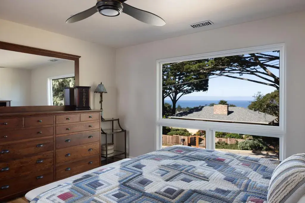 Your exquisite coastal retreat a harmonious blend of elegance and modernity with expansive ocean views throughout the home awaits. This fully remodeled ranch-style abode offers 2,000+ SF of living space and features 3 spacious bedrooms and 2 bathrooms. The gourmet chefs kitchen is equipped with Wolf and Sub-Zero appliances, maple cabinetry, walk-in pantry, beautiful quartz counters, and Jerusalem Stone backsplash to inspire your culinary creativity. It flows seamlessly to the living and dining areas, from Italian tile to wide-plank solid hickory floors, the heart of the home is found, where at the center sits its beautifully appointed Spalted Oak travertine fireplace alongside the ocean view; the gathering place for those cooler fall evenings. The spacious master bedroom hosts a large walk-in closet and ensuite bathroom with reclaimed pine dual vanity & custom Italian tile shower. Enjoy the view, the fireplace, lots of storage, recessed lighting, and modern touches throughout. Remodeled in 2021, including all new wiring, copper plumbing, heating, insulation, plaster walls, and more. Situated on a generous 7,416 SF lot with an oversized 2-car garage, this gem is conveniently located near shops and dining, providing the perfect lifestyle of comfort and accessibility.