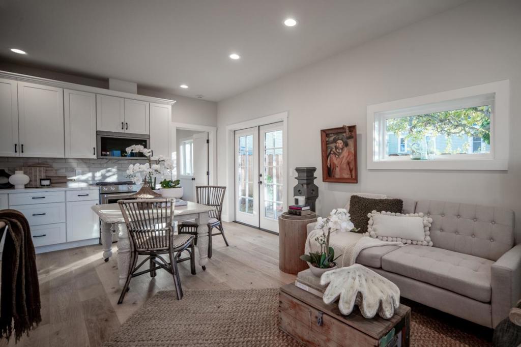 Experience the quintessential Pacific Grove lifestyle in this meticulously renovated 1908 beach cottage. Situated among historic landmarks, you are just two blocks from downtown and five blocks from the stunning coastline. The interior features an airy, open-concept floor plan with European white oak floors and light filled living spaces that flow seamlessly through French doors to a private patio. The chef-inspired kitchen boasts quartz countertops and premium appliances. Each bedroom serves as a private retreat with its own designer-tiled full bath; the primary suite includes a spacious walk-in closet, a double-sized shower, and direct garden access via French doors. Stripped to the studs, this home offers: new roof, plumbing, electrical, drywall, energy-efficient casement windows, landscaping, structural retaining wall, EV charging outlet and a refreshed detached one-car garage. Located minutes from Pebble Beach, Carmel-by-the-Sea, and the Monterey Bay Aquarium, this home offers the perfect blend of vintage charm and modern luxury for a full-time residence or coastal getaway.