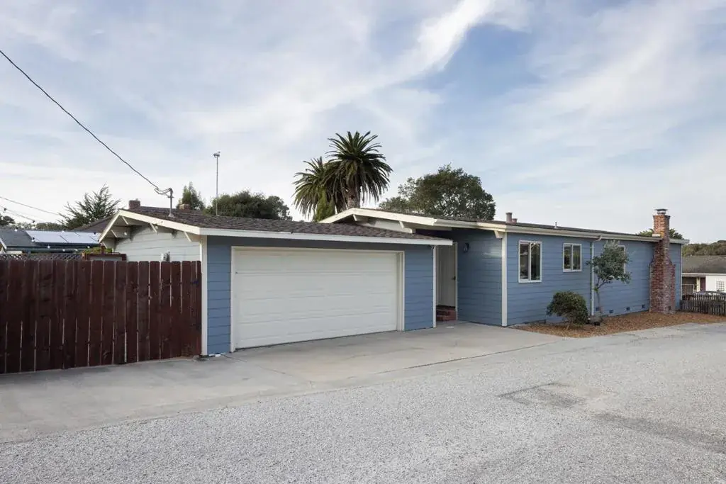 This charming single-level residence is set in a desirable, centrally located Pacific Grove neighborhood, just minutes from downtown, local schools, and the coastline. The 1,352 square foot layout includes three bedrooms and two bathrooms arranged with an easy, natural flow. Wood-laminate flooring runs throughout the main living areas, while the living room is highlighted by vaulted, open-beam ceilings and a wood-burning fireplace with a gas starter. Recent updates include fresh interior paint, a remodeled hall bathroom, and a newer composition shingle roof. The 4,100 square foot lot features an oversized detached two-car garage with ample space for storage or a workshop, along with a backyard deck for outdoor enjoyment. This is a well-maintained home in a location that captures the best of Pacific Grove living.