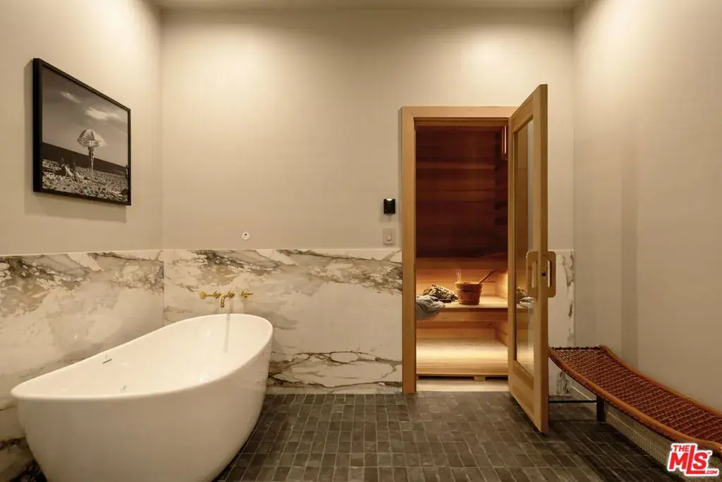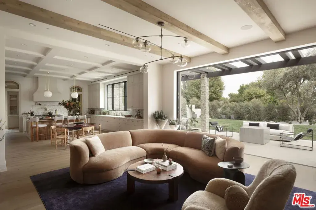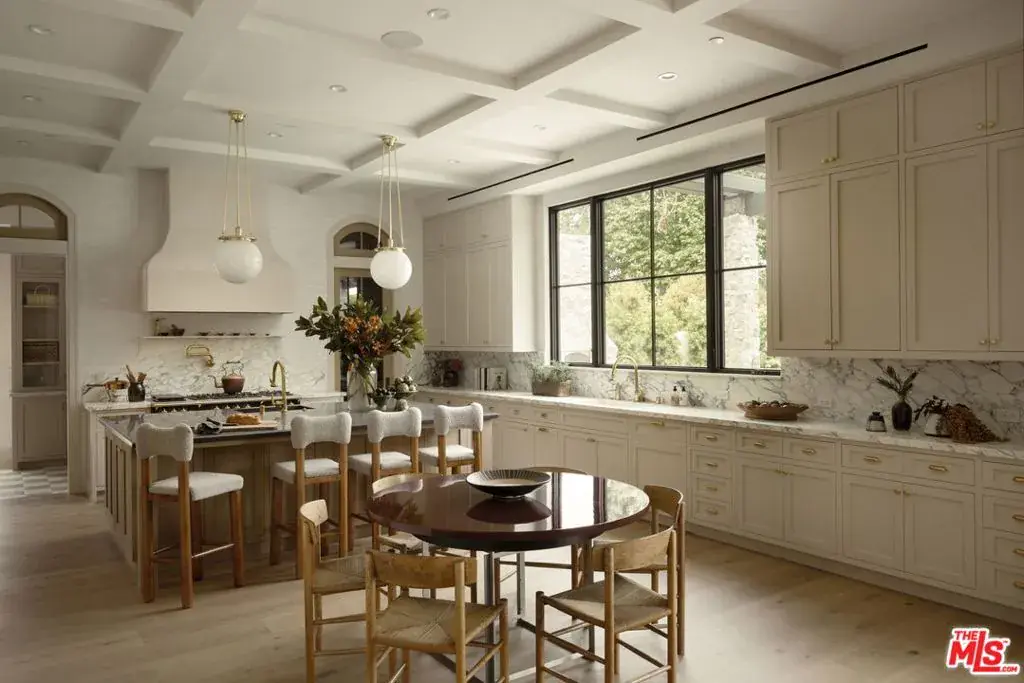 Mediterranean charm meets refined European elegance in this brand-new construction, 6-bedroom plus office, 9-bath, 10,100 sq ft residence set on a 14,143 sq ft corner lot. Heritage olive trees, vintage ceramic pots, and lush Mediterranean-inspired gardens frame a tumbled natural stone facade accented with fire-rated Acre siding that blends durability with timeless appeal. Step inside to discover interiors that celebrate artisanal craftsmanship and understated luxury. Solid white oak floors flow seamlessly throughout, complemented by intricate custom wood moldings and millwork that bring depth and warmth to every room. A curated selection of handpicked designer finishes lends effortless sophistication. The chef’s kitchen features custom marble countertops sourced and designed with inspiration from classic French ateliers, paired with European checkered flooring that continues into the hidden butler’s pantry. Formal living and dining rooms, a family room, and multiple entertaining spaces connect effortlessly to the resort-style backyard. Outdoors, a shimmering pool and spa with checkered stone waterline tiles set the tone for a luxurious living experience. An outdoor kitchen featuring an Alfresco pizza oven, a sculptural fire pit, and multiple terraces with panoramic canyon views extends the living space beyond the interior. The primary suite offers a tranquil escape beneath vaulted white oak ceilings, complete with dual walk-in closets, a private morning bar, and a spa-like bath featuring Waterworks fixtures and a Hydro Systems soaking tub . Additional amenities include a moody speakeasy bar, a 1,657-bottle refrigerated wine room, a state-of-the-art theater, and a wellness wing with a gym, cold plunge, sauna, steam room, and private massage room.