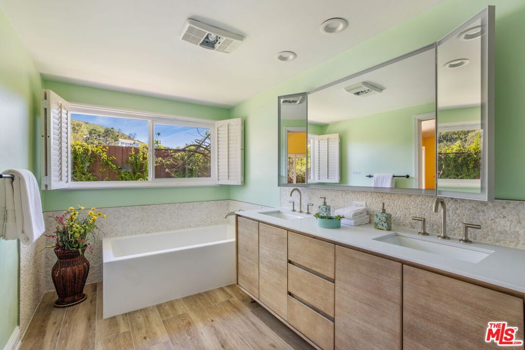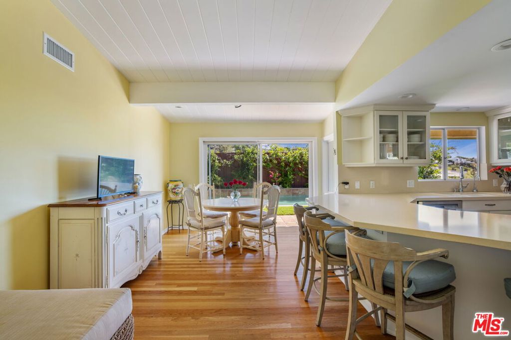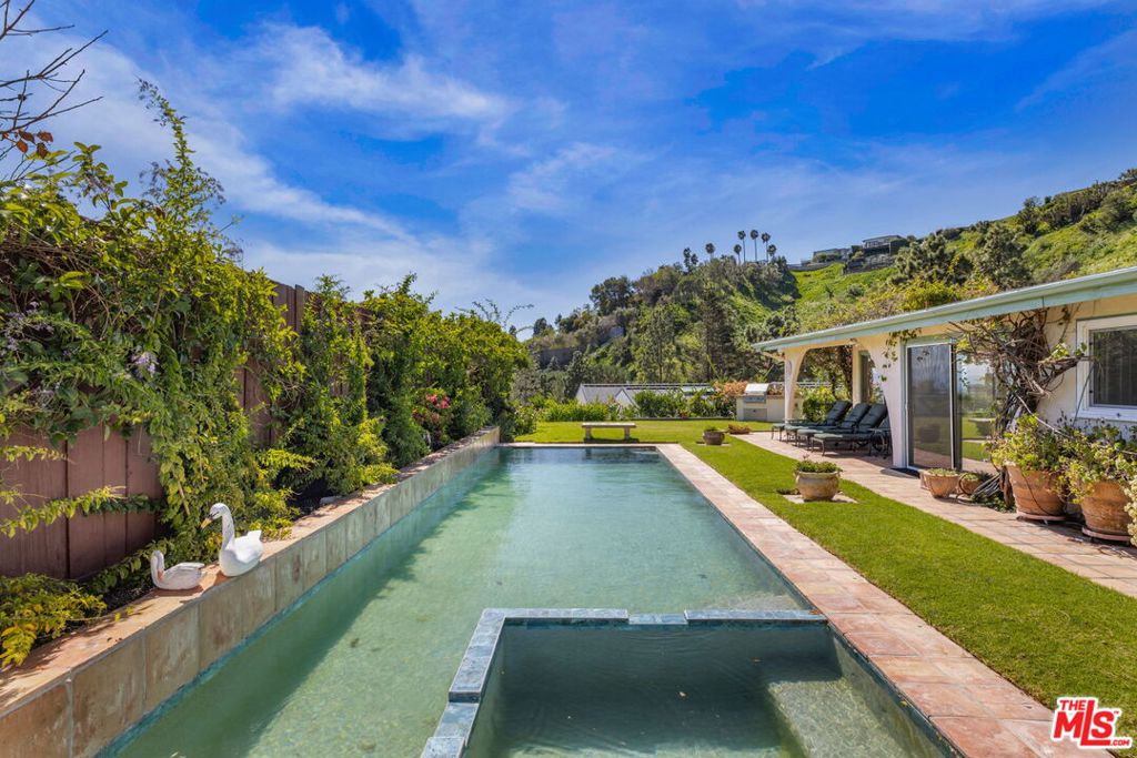 Welcome to 1336 Bienvenida Avenue, a tranquil retreat nestled in the coveted hills of Pacific Palisades. This inviting 4-bedroom, 2.5-bath residence offers privacy, comfort, and effortless California living all year round. You will be overwhelmed by the ocean views, serenity, and convenience to walking trails. A spacious living room welcomes you with rustic wood-beamed ceilings and an abundance of natural light, creating a warm yet open atmosphere ideal for both relaxing evenings and stylish entertaining. Plus, a special remodeled primary bathroom that feels like a spa, large family room, spacious dining room and eat-in kitchen. The interior layout flows seamlessly outdoors to a spectacular backyard designed for resort-style enjoyment.The private outdoor sanctuary features a stunning pool with both solar and gas heating, a rejuvenating spa, expansive decking for lounging and dining, and lush professional landscaping that enhances both beauty and privacy. Whether hosting lively gatherings or enjoying peaceful mornings, this outdoor setting delivers the ultimate Southern California lifestyle experience.Move-in ready and thoughtfully updated, the home blends timeless charm with modern convenience, making it ideal for families, entertainers, or anyone seeking a serene escape close to everything.This is a rare opportunity to lease a turnkey property in one of Los Angeles’ most desirable coastal communities.