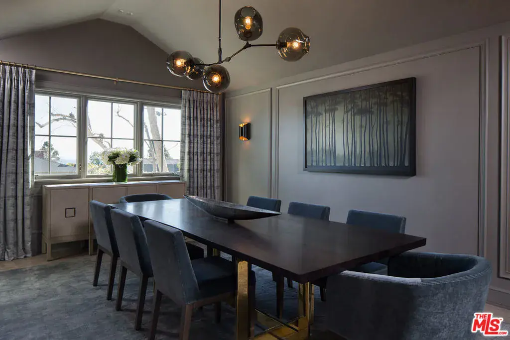 Beautifully renovated single-story California Ranch home situated on a large lot in prime Huntington Palisades. This elegant 5-bedroom, 4.5-bath residence plus office offers an exceptional open floor plan and seamless indoor/outdoor living. The gourmet kitchen features top-of-the-line appliances, a breakfast bar, and a built-in banquette, and opens to a spacious family room with custom built-in entertainment center. Expansive glass sliding doors lead to a covered patio with built-in heaters and a beautifully landscaped backyard with mature trees, fire pit, pool, and spa, ideal for entertaining and everyday enjoyment. The home also offers a formal dining room and a living room with fireplace overlooking the garden. The elegant primary suite includes a luxurious spa-like bathroom and walk-in closet. In addition to four secondary bedrooms and three and a half baths, there is a dedicated home office with extensive built-ins. Additional features include ocean and city light views, high ceilings, multi-zone HVAC, hardwood floors, and a three-car garage with direct access. A rare opportunity to live in one of the most sought-after neighborhoods on the Westside and enjoy the best of the California lifestyle.
