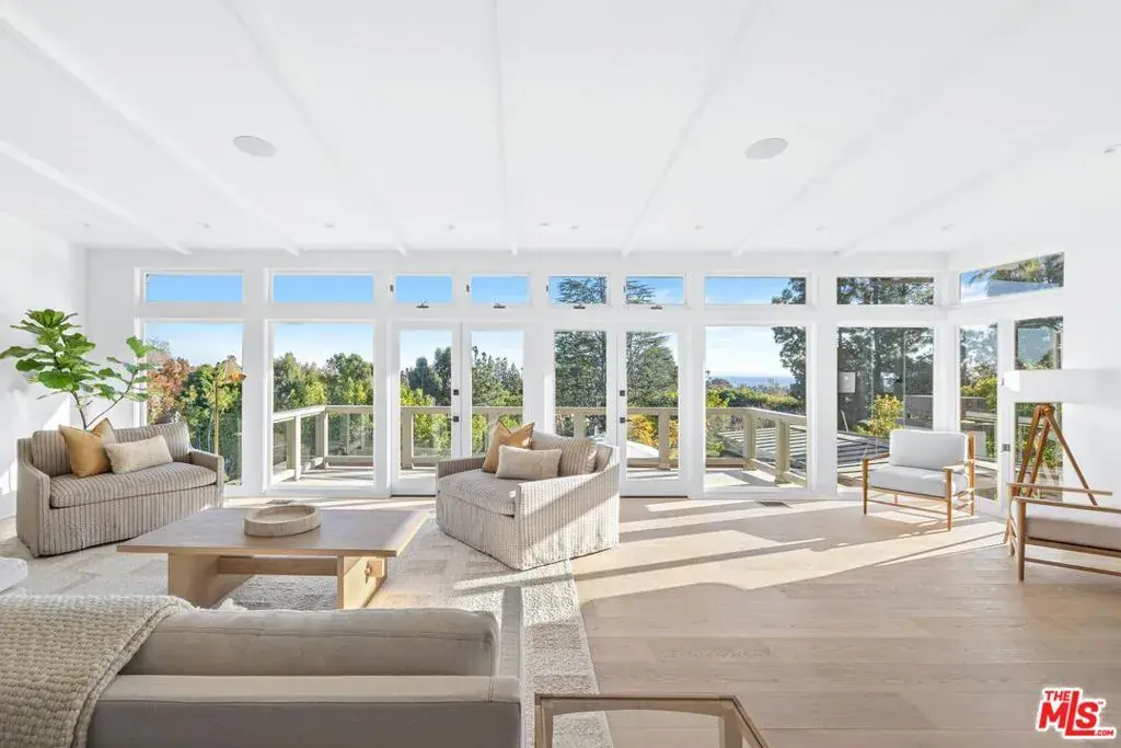 Ocean view estate on a private, quiet street in Upper Riviera, offering a rare opportunity to live in one of the Westside’s most sought-after zip codes. This fully remodeled residence features 5 bedrooms and 4.5 bathrooms and is flooded with natural light while overlooking Santa Monica Bay and sparkling city lights. Designed for seamless indoor-outdoor California living, the home opens to a stunning French limestone terrace complete with BBQ and a pergola with fireplace, all surrounded by an expansive green lawn perfect for entertaining. A separate guest pavilion with a full bath and kitchenette offers exceptional flexibility, ideal as a junior suite, office, gym, or private guest retreat. The property sits on a spectacular 17,060-square-foot lot (.39 acres) and features a pool and jacuzzi, creating the perfect private outdoor retreat. Located within walking distance to the Riviera Country Club, this exceptional estate combines luxury, privacy, and an unbeatable Westside location. Lease available start date May 15th, 2026. AVAILABLE FOR WORLD CUP AND SHORT-TERM, PLEASE INQUIRE.