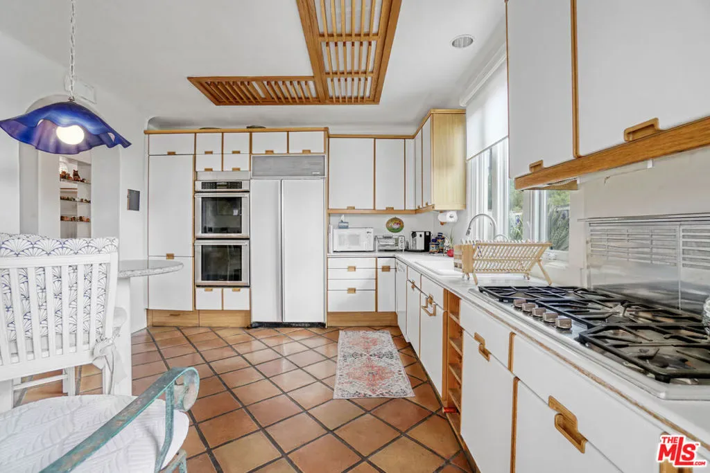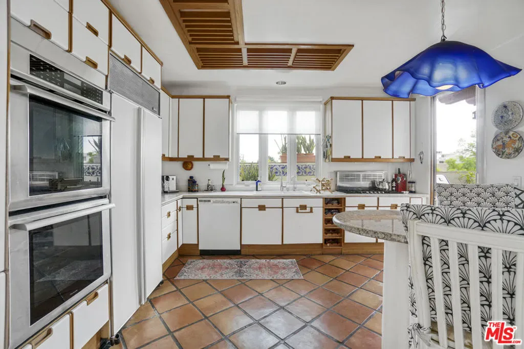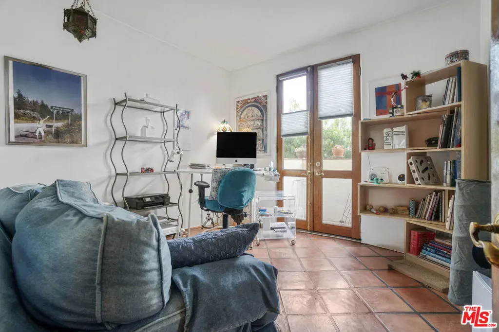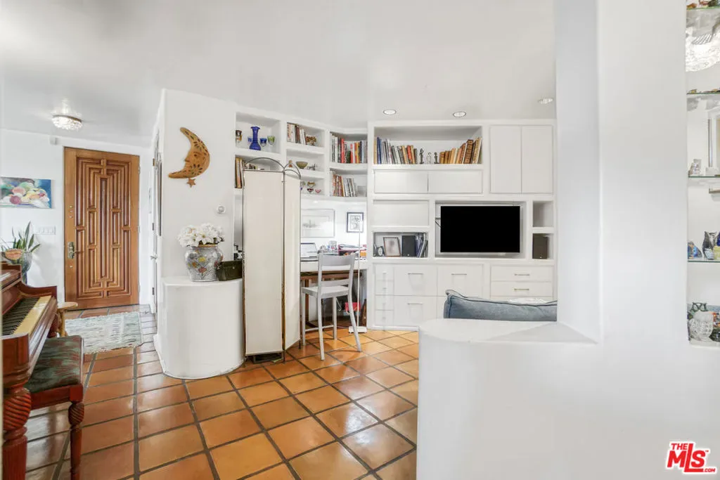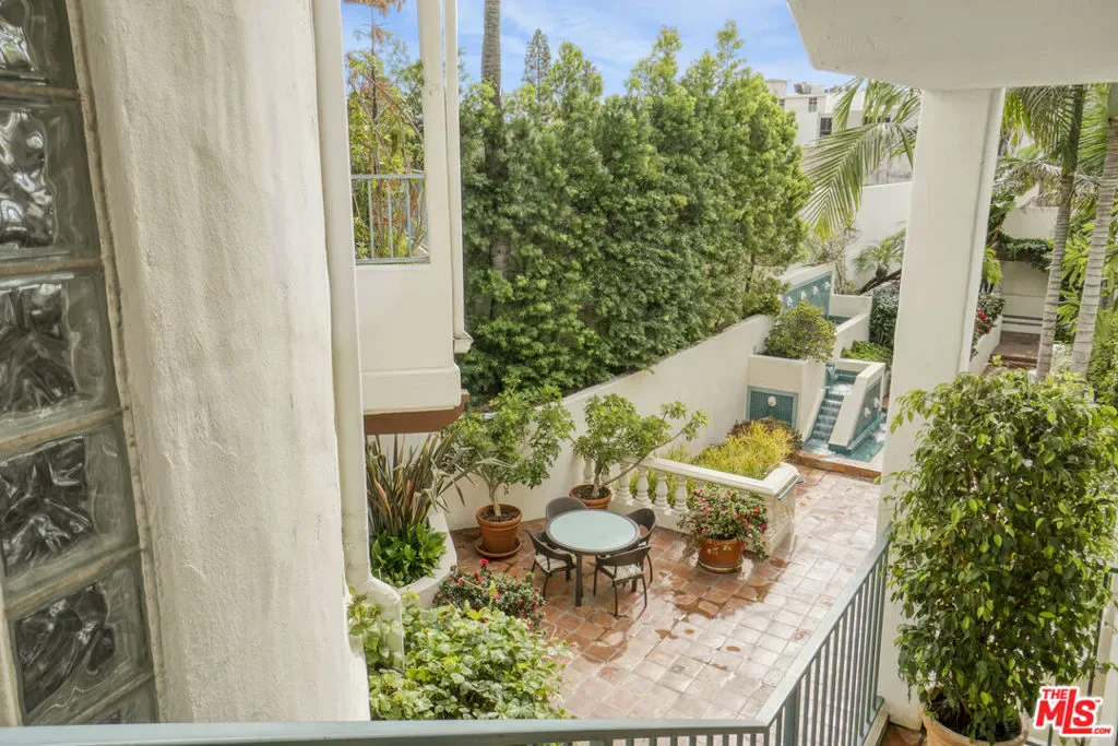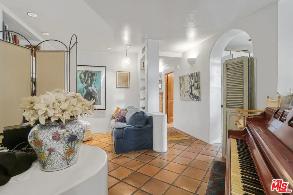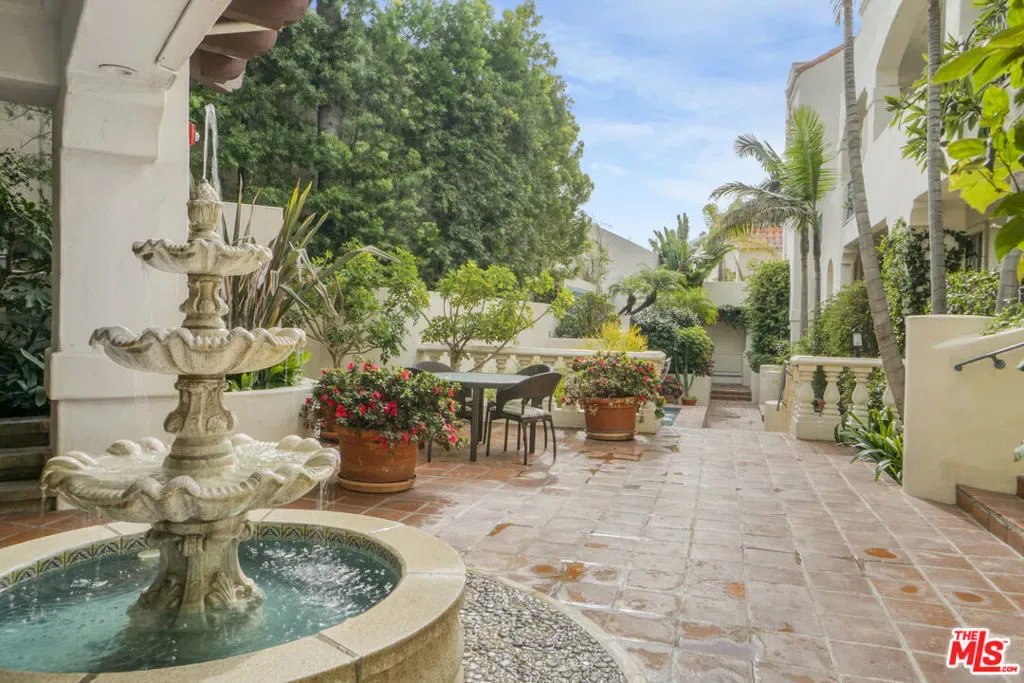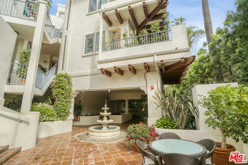 Hacienda-style elegance meets coastal luxury in the heart of Palisades Village. This stunning 2BD/2BA condo boasts soaring ceilings, graceful arched doors, and coved corners. At the heart of the home, the open-concept cook’s kitchen flows seamlessly onto a large patio, creating an exceptional space for indoor-outdoor dining and entertaining. Relax in the sun-drenched, expansive living room, anchored by a cozy fireplace and Mediterranean tile pavers, or in the versatile Family Room – a contemporary media hub and office suite without the clutter. A stunning custom wall integrates bookshelves, feature shelving, a large-screen TV, and a desk structure, while office hardware is concealed behind bespoke white cabinetry. The master suite is a private sanctuary featuring a romantic fireplace, a sitting area, and a large walk-in closet. French doors open to a large private balcony, while the luxurious master bath has a walk-in spa featuring dual shower heads and integrated stone bench seating. His-and-her linear suite has an oversized stone countertop and a continuous mirrored backdrop for a complete boutique spa experience. A discreet, private water closet features both a toilet and bidet. A totally separate second bedroom has French doors opening to a balcony and a full bath, ensuring ultimate privacy for guests, or additional work-from-home flexibility with a second professional office or creative studio. Enjoy the complex’s exceptional Zen-like courtyard with two designer fountains and abundant landscaping, just steps from Caruso Village shops, fine dining, and Temescal Canyon trails. Includes in-unit laundry, extra storage, and two side-by-side gated parking spots. Only one mile to the beach in a premier school district. This is five-star living at its finest.
