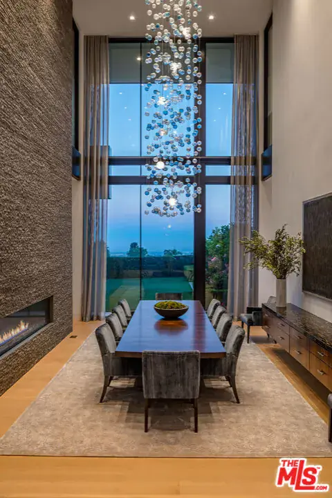 The Perfect Blend of modern architecture, panoramic views, A+ Location and every conceivable amenity. Designed by Paul McClean and built by Tyler Construction to the highest standards. Sited on nearly 2/3 acre promontory with wrap around views of the Pacific Ocean to Downtown Los Angeles. The location is unparalleled in the Palisades Riviera. The centerpiece of this architectural jewel is a 3-story waterfall/courtyard with walls of glass on 3 sides. Envisioned for entertaining on a grand scale, the living room opens to main lawn and the dining room soars with double height ceilings. Gourmet Kitchen and family room adjacent to large infinity-edge pool and covered dining – all with spectacular views to the West. Upstairs, 5 major bedrooms suites, including a primary that rivals the finest hotels in the world. 7 bedrooms in total, makes for an incredible family estate. The Lower level includes game room with bar, wine cellar, state-of-the-art cinema and gym. Car museum with turntable completes this most special offering. One of only a few modern view estates in the Riviera, iconic in every way. Shown only to prequalified buyers.