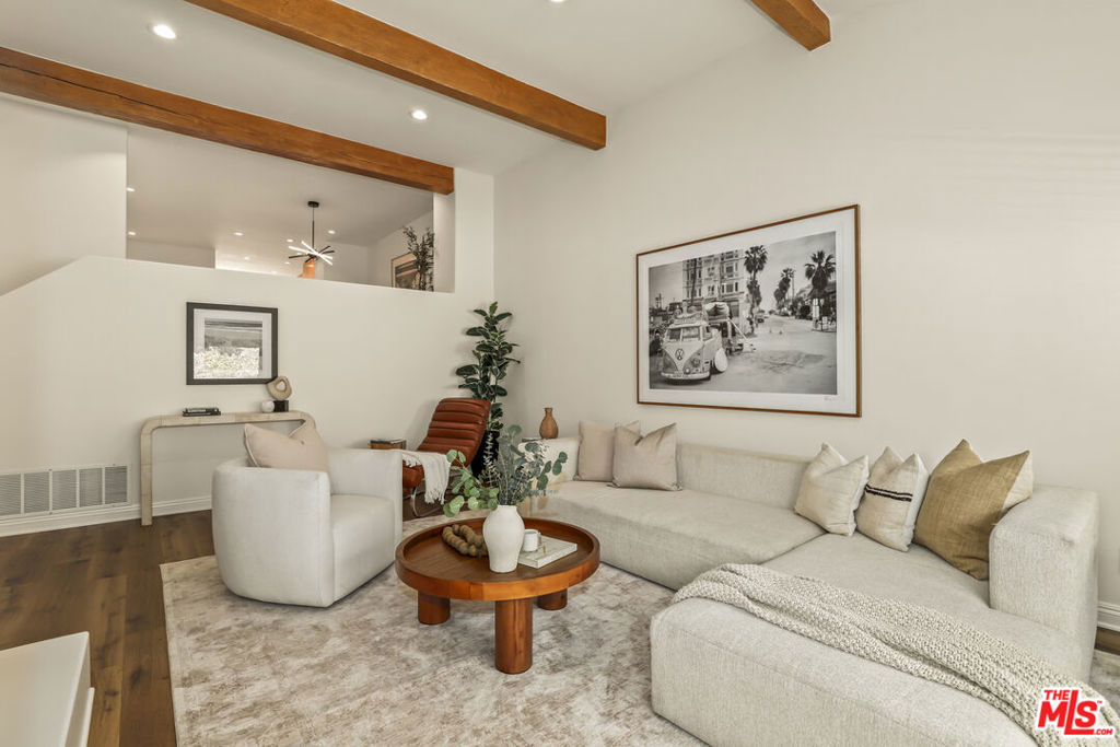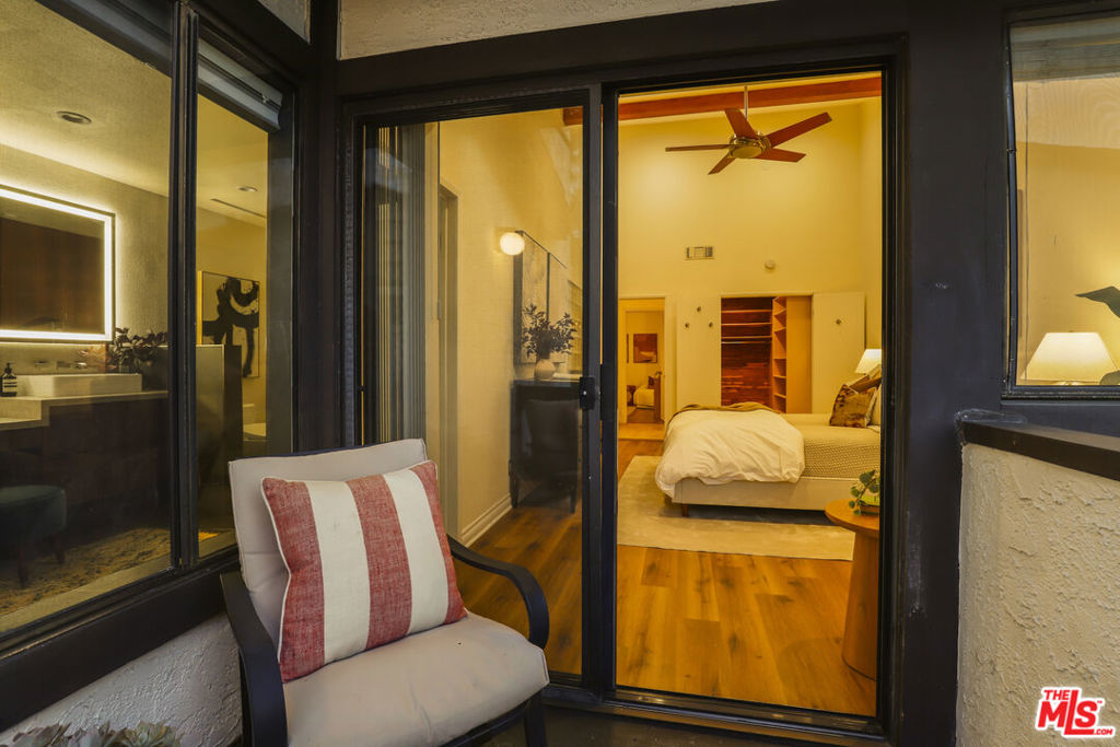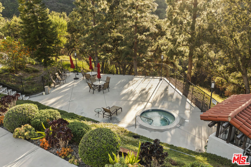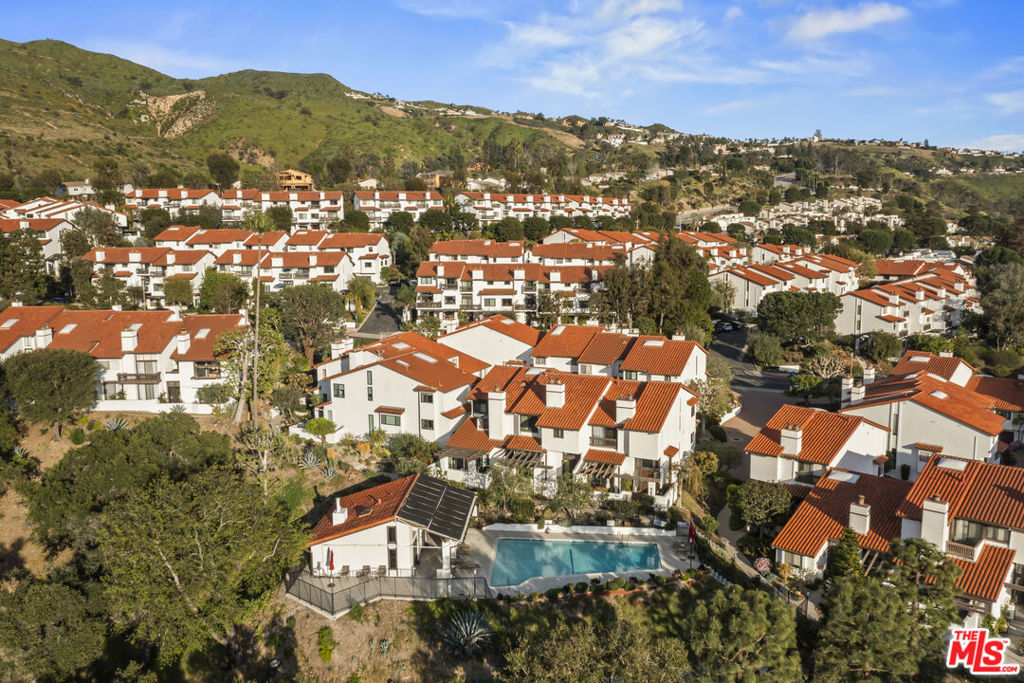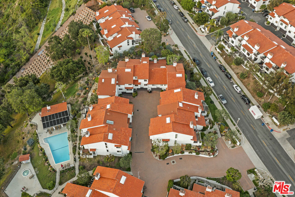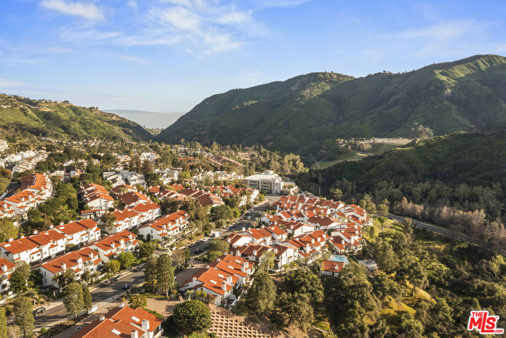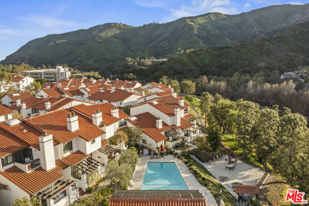 Perched in the coveted Highlands enclave of Pacific Palisades, this exquisitely updated townhome offers a refined blend of sophisticated design, modern comfort, and breathtaking canyon vistas.Sunlight pours through soaring ceilings and a dramatic skylight, illuminating the home’s open-concept living spaces. The living room centers around a warm fireplace and flows effortlessly to a serene patio with new tile flooringan inviting setting for morning coffee or sunset entertaining surrounded by a beautiful botanical paradise.The state-of-the-art chef’s kitchen is both striking and functional, featuring Brazilian granite countertops, rare Anegre African wood cabinetry, and premium appliances including a Viking six-burner range with griddle and KitchenAid built-in refrigerator. Custom pull-out cabinetry, a stylish wet bar, and tranquil mountain views from the kitchen complete this thoughtfully designed culinary space.Upstairs, a glass-railed staircase leads beneath a stunning skylight to the private bedroom level. The primary suite is a tranquil retreat with vaulted ceilings, a spacious cedar-lined walk-in closet, and a newly renovated spa-inspired bathroom appointed with Brizo fixtures, a Toto Washlet bidet, custom cabinetry, dual sinks, vanity table, LED backlit mirror, and a walk-in shower with dual shower heads. A private balcony captures sweeping canyon views.A secondary upstairs bedroom features its own en-suite bathroom, while an additional bedroom and full bath on the main level offer flexibility for guests, office space, or multigenerational living.Additional features include French limestone flooring, exotic hardwoods, central HVAC, designer lighting, a full-house water filtration system, new gas water heater, and a direct-access two-car garage with extensive custom storage.Residents enjoy resort-style amenities including a pool, spa, sauna, and fitness center overlooking the surrounding canyon landscape.Just moments from the boutiques, dining, and community atmosphere of Palisades Village, as well as nearby hiking trails and the beach, this home offers an exceptional blend of luxury, tranquility, and coastal lifestyle.