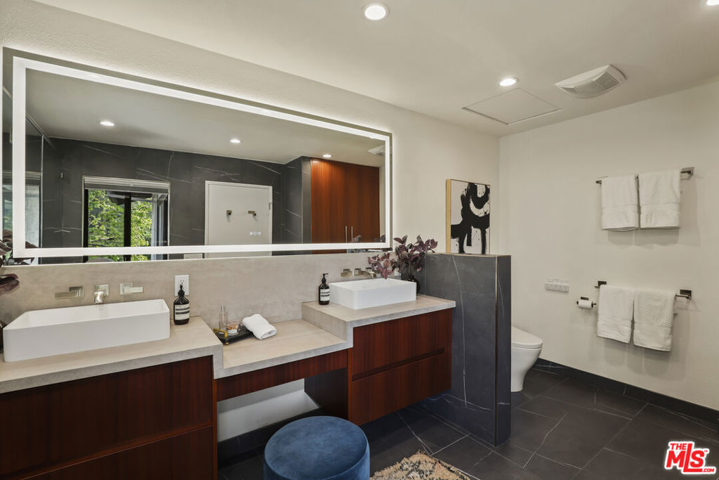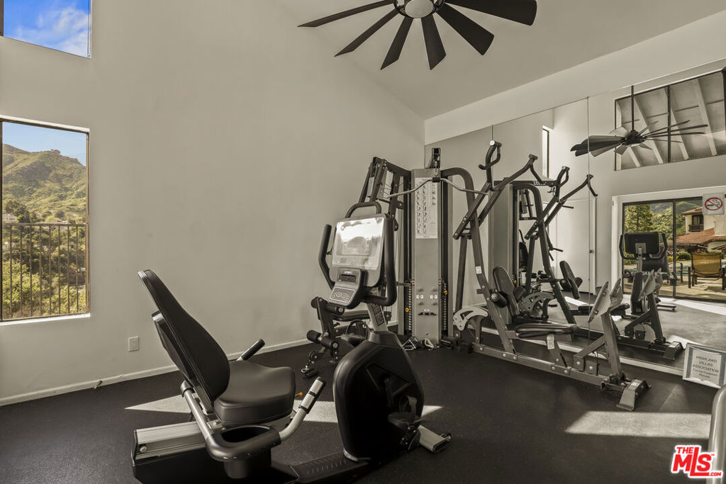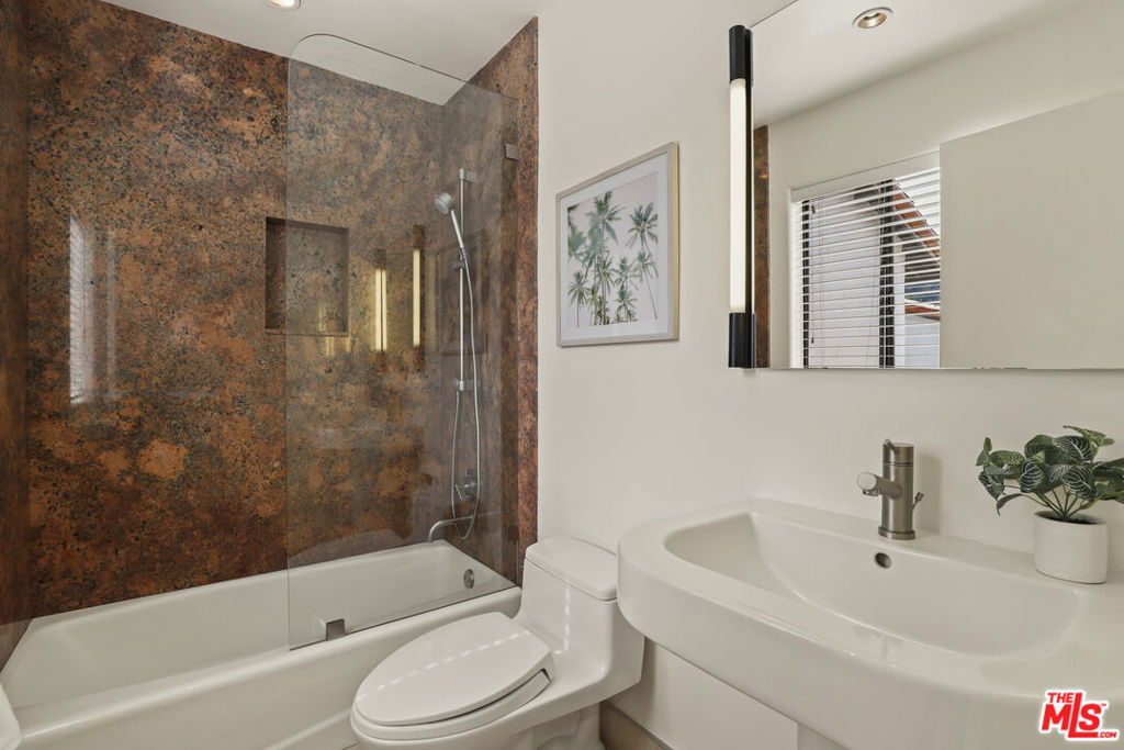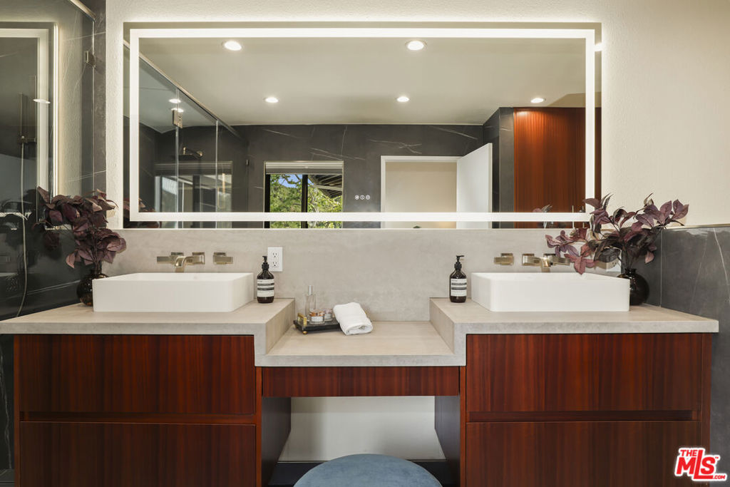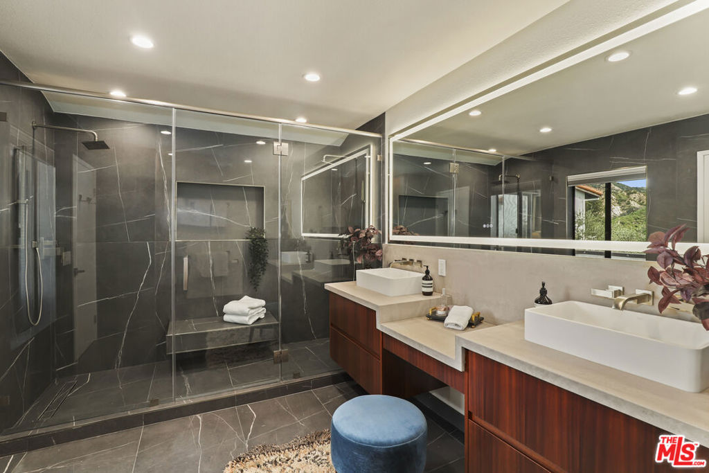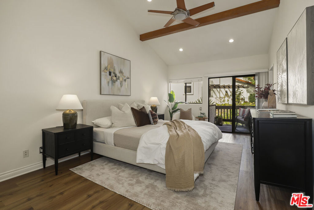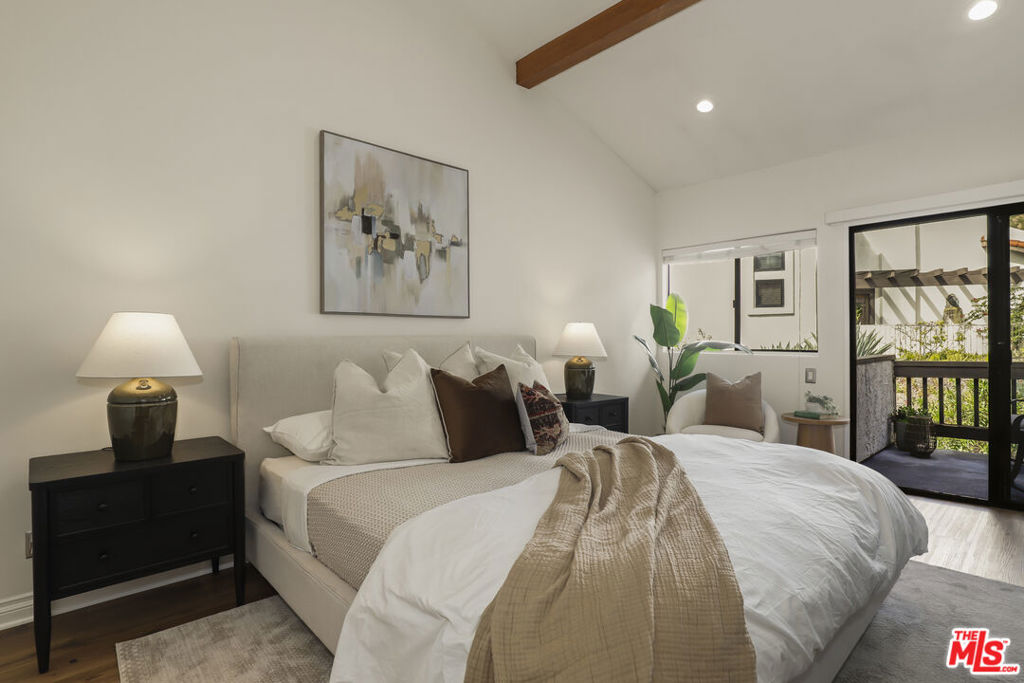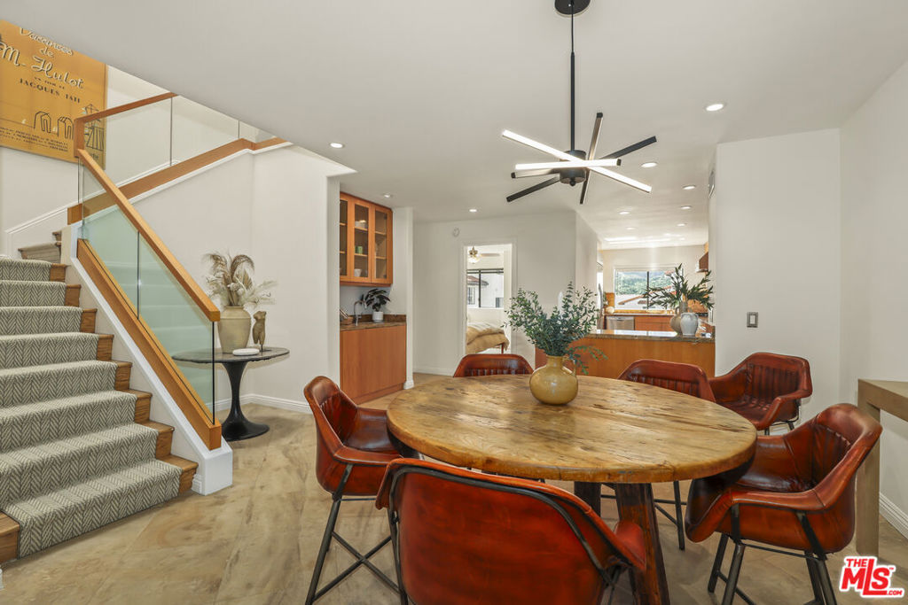 Perched in the coveted Highlands enclave of Pacific Palisades, this exquisitely updated townhome offers a refined blend of sophisticated design, modern comfort, and breathtaking canyon vistas.Sunlight pours through soaring ceilings and a dramatic skylight, illuminating the home’s open-concept living spaces. The living room centers around a warm fireplace and flows effortlessly to a serene patio with new tile flooringan inviting setting for morning coffee or sunset entertaining surrounded by a beautiful botanical paradise.The state-of-the-art chef’s kitchen is both striking and functional, featuring Brazilian granite countertops, rare Anegre African wood cabinetry, and premium appliances including a Viking six-burner range with griddle and KitchenAid built-in refrigerator. Custom pull-out cabinetry, a stylish wet bar, and tranquil mountain views from the kitchen complete this thoughtfully designed culinary space.Upstairs, a glass-railed staircase leads beneath a stunning skylight to the private bedroom level. The primary suite is a tranquil retreat with vaulted ceilings, a spacious cedar-lined walk-in closet, and a newly renovated spa-inspired bathroom appointed with Brizo fixtures, a Toto Washlet bidet, custom cabinetry, dual sinks, vanity table, LED backlit mirror, and a walk-in shower with dual shower heads. A private balcony captures sweeping canyon views.A secondary upstairs bedroom features its own en-suite bathroom, while an additional bedroom and full bath on the main level offer flexibility for guests, office space, or multigenerational living.Additional features include French limestone flooring, exotic hardwoods, central HVAC, designer lighting, a full-house water filtration system, new gas water heater, and a direct-access two-car garage with extensive custom storage.Residents enjoy resort-style amenities including a pool, spa, sauna, and fitness center overlooking the surrounding canyon landscape.Just moments from the boutiques, dining, and community atmosphere of Palisades Village, as well as nearby hiking trails and the beach, this home offers an exceptional blend of luxury, tranquility, and coastal lifestyle.