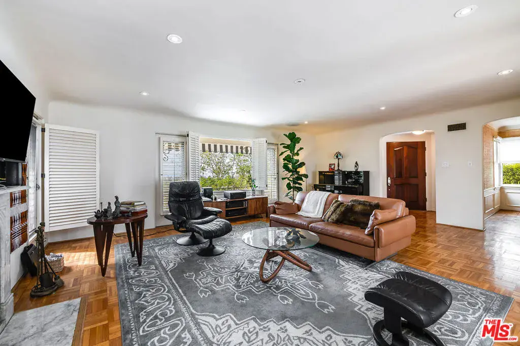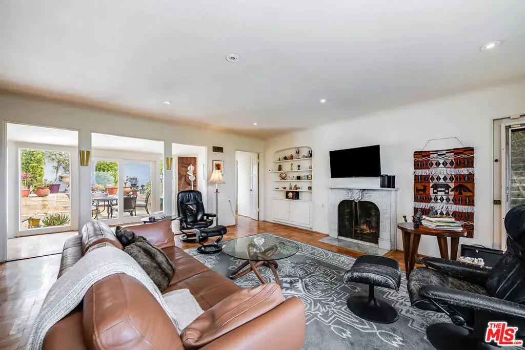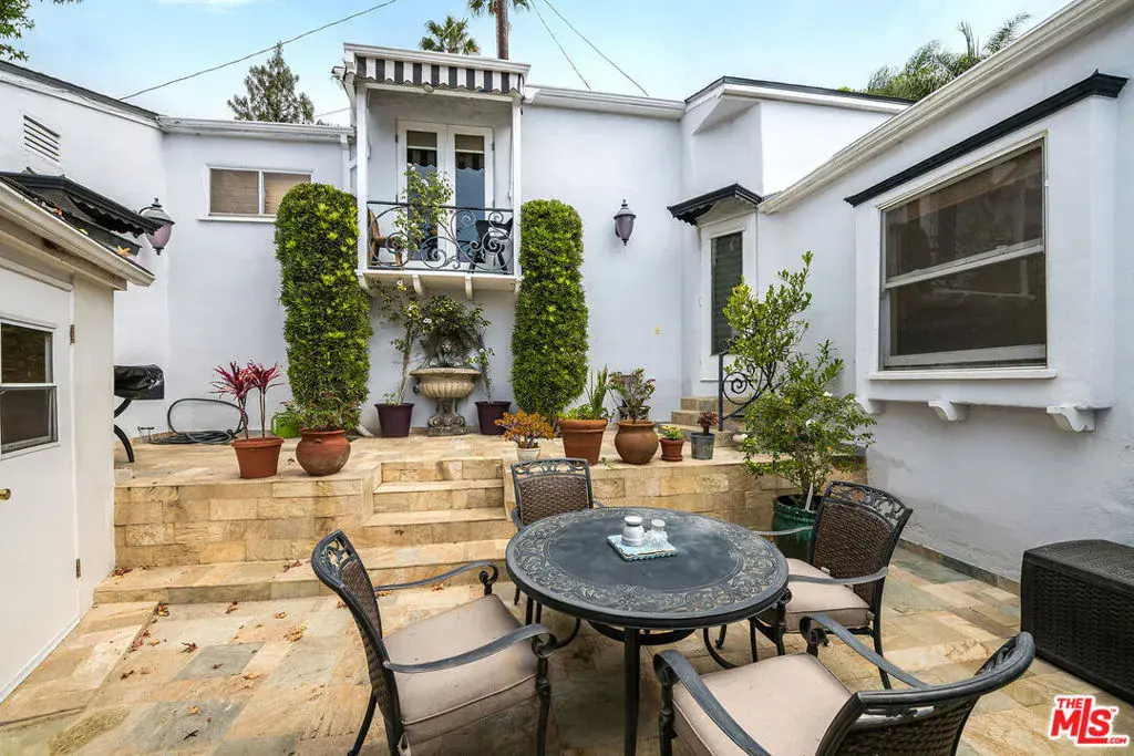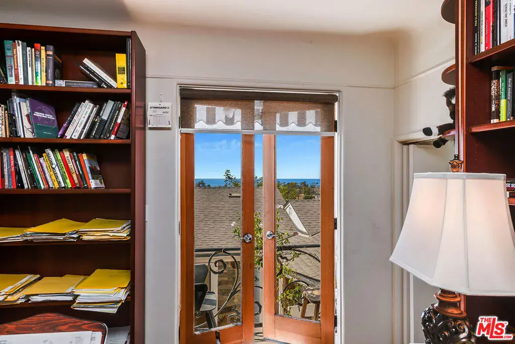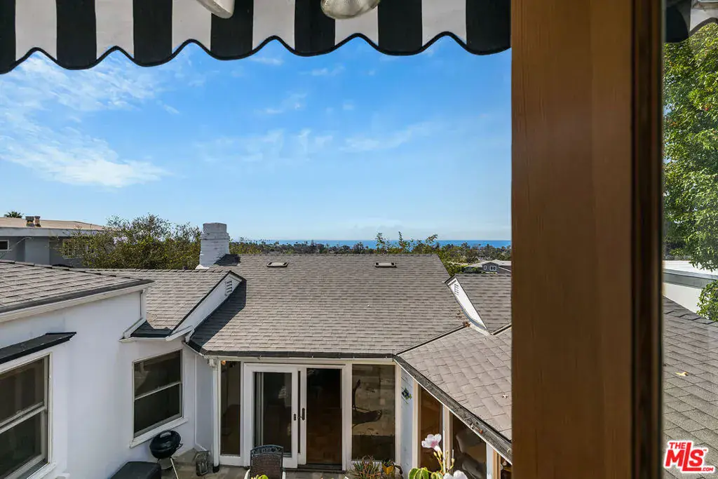 Enjoy beautiful ocean views from this light-filled Pacific Palisades residence that blends warmth, charm, and coastal tranquility. With just under 2,000 sq.ft. of living space, the home sits on a beautifully landscaped, elevated lot that enhances its privacy and natural light. At the heart of the home is an enchanting central courtyard, accessible from most rooms, creating a seamless indoor-outdoor flow perfect for relaxed California living. The main level features a spacious living room, a formal dining room, and a well-appointed kitchen with a breakfast area. The primary suite offers its own private patio with a soothing fountain and a remodeled en-suite bath. Upstairs are two additional bedrooms, including one currently used as an office with a Juliette balcony and ocean view, along with a bonus room and two additional bathrooms. Other highlights include a laundry room, an oversized two-car garage, and a new roof (done in 2022). A rare opportunity to own a warm and tranquil home, combining coastal charm with timeless comfort.