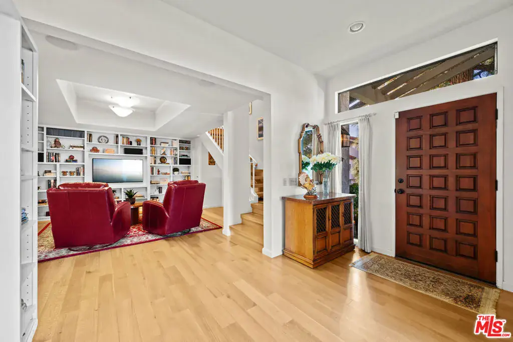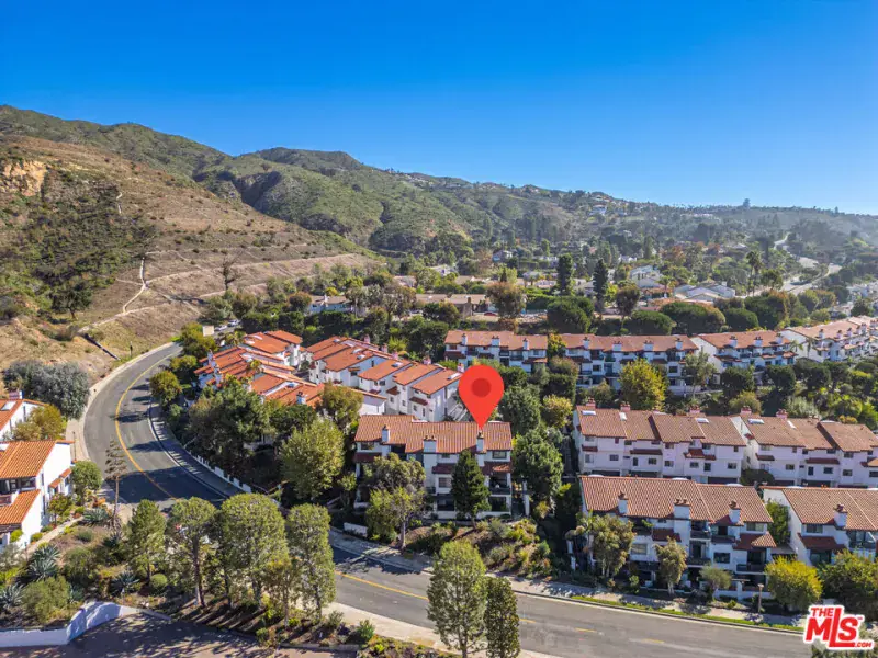 Stunning Mountain Views & Resort-Style Living in the Palisades Highlands! This coveted end-unit Michael Lane Villa townhome offers nearly 2,500 sq ft of refined living across three thoughtfully designed levels. Framed by dramatic vistas of the Santa Monica Mountains, the home seamlessly blends tranquility, elegance, and versatile functionality. A welcoming front patio and dedicated foyer introduce the residence and open to a generous multi-purpose flex space – perfect as a den, library, sitting room, creative studio, gym, or guest suite – complete with a wet bar and a full en-suite bath. Enjoy access to the expansive private patio overlooking sweeping canyon and mountain scenery, creating an exceptional indoor outdoor flow ideal for relaxation or entertaining. The mid-level conveniently offers direct access from the private two-car garage and features an airy formal living room with soaring ceilings, a fireplace, and a private balcony capturing stunning mountain and canyon views. The adjacent formal dining room with views is perfect for large gatherings and connects effortlessly to the spacious kitchen, with ample cabinetry and storage, granite countertops, and a charming breakfast area. A powder bath completes this level. Continue upstairs to the grand primary suite – a serene retreat with its own sitting area, cozy fireplace, private view balcony, expansive walk-in closet with two additional closets, and a luxurious en-suite bath designed for comfort and unwinding. A spacious second-bedroom suite offers excellent closet space, a beautifully updated bathroom and provides flexibility for guests or family. Additional highlights include high ceilings, multiple balconies, and the extra natural light and privacy afforded by an end-unit setting. Residents enjoy access to resort-style community amenities, including a beautiful pool/spa, sauna, fitness center, 2 guest parking spaces conveniently located behind this home’s garage, and an HOA that includes water and ACS Palisades Highlands security. This exceptional residence delivers a rare combination of stunning views, surrounding natural beauty, and spacious sophisticated living in one of the most picturesque enclaves of the Palisades Highlands. NOTE: Some photos have been virtually staged,