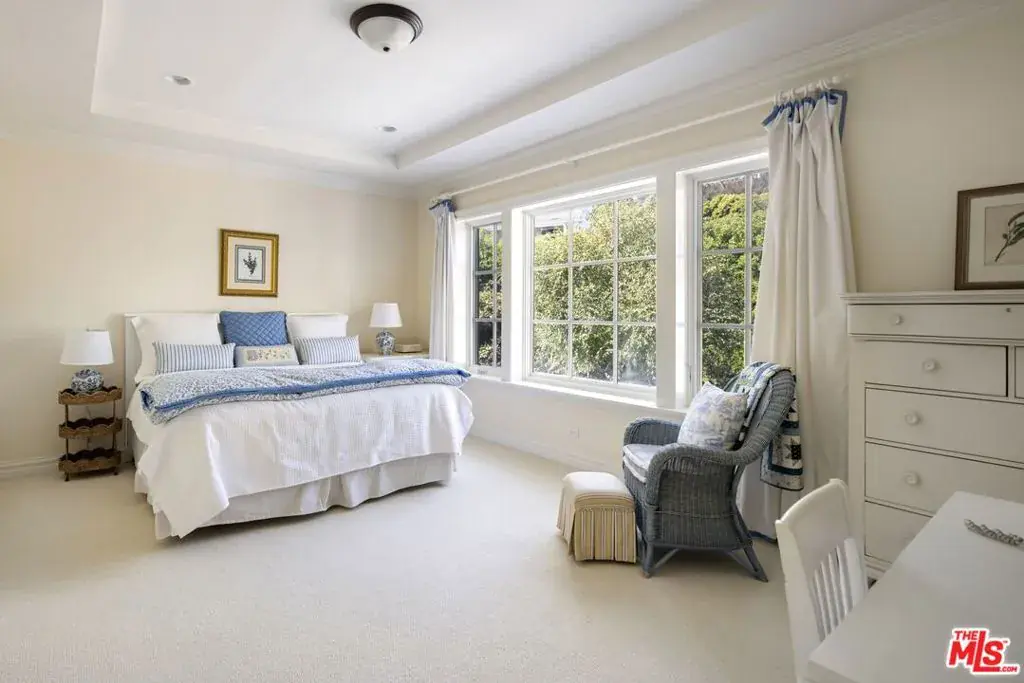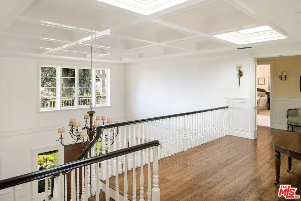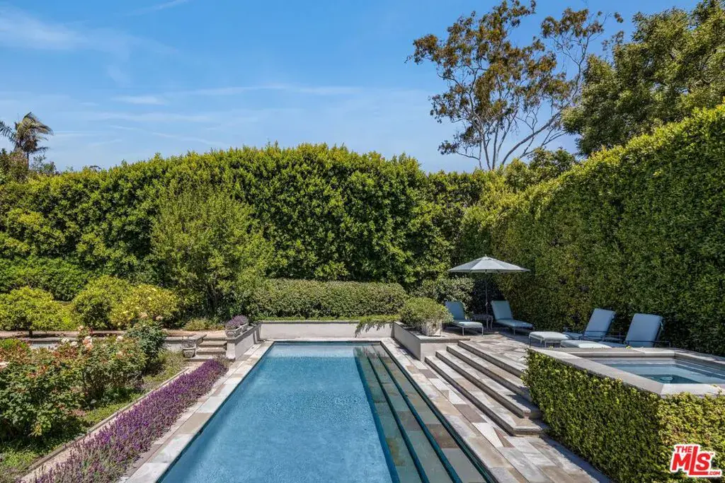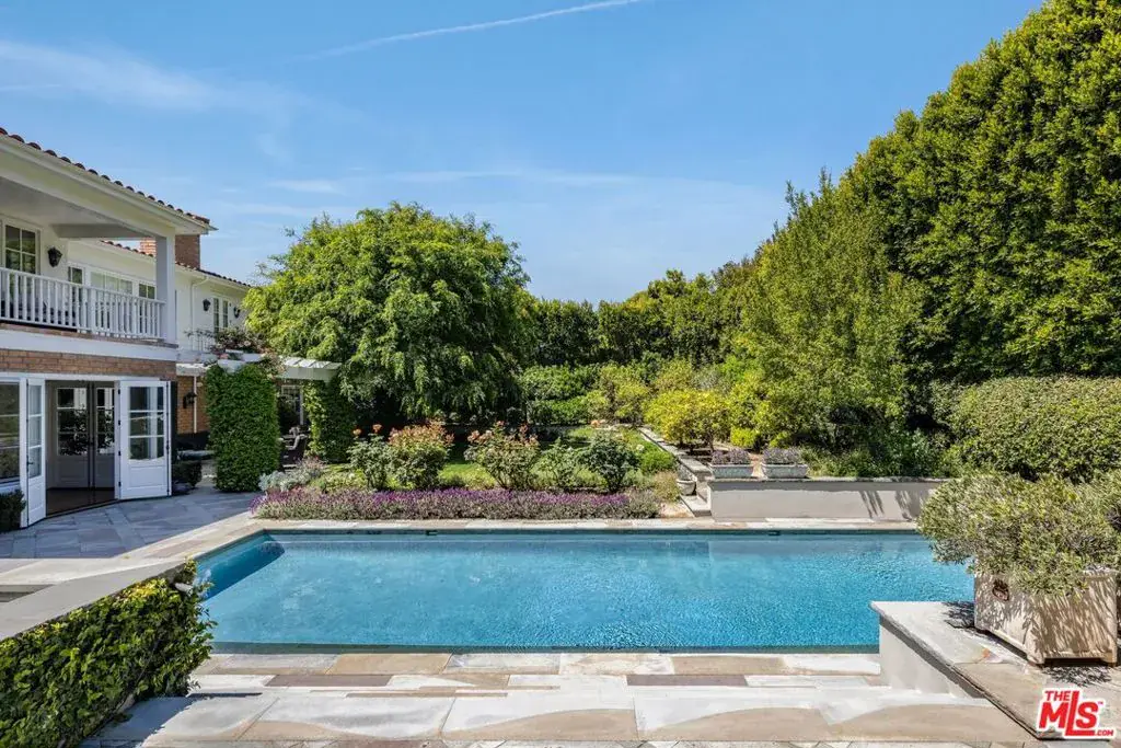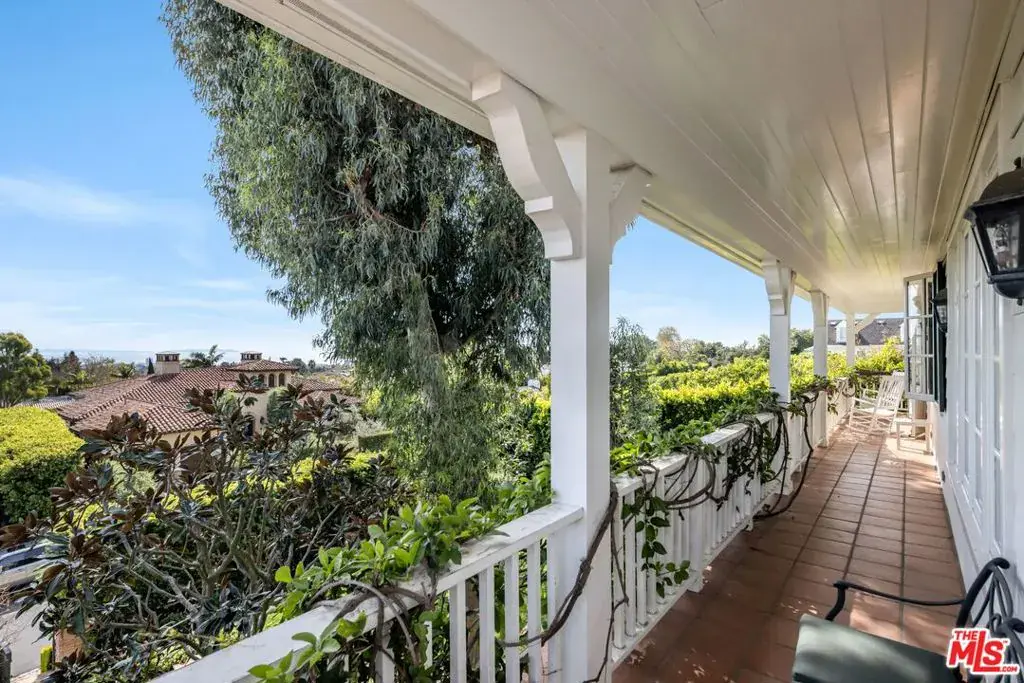 Majestic and stately Classic Monterey Colonial estate set on a gentle knoll with ocean, city, and treetop views, tucked away in a very quiet and secluded pocket of the Riviera. Set behind gates and tall hedges on an expansive 18,340 sq ft lot and framed by towering trees, this timeless home showcases a perfect floor plan, high ceilings, gracious public rooms, and a sizable, lush, private yard. A welcoming, sun-filled double-height entry with coffered ceiling leads to a living room, large formal dining room, and inviting rich stained-wood library – each featuring its own wood-burning fireplace. Across the back of the residence is a published cook’s kitchen, generous breakfast room, and fabulous family room with fireplace, all opening to a trellis-covered patio, pool, spa, lawn, and gardens for seamless indoor-outdoor living. Also on the main level is a wonderful junior primary suite overlooking the gardens, complete with a spacious bath and walk-in closet. In total, the home offers six en-suite bedrooms, including a sumptuous owner’s suite with ocean and city views, fireplace, sitting area, lavish bath, two walk-in closets, private terrace, and separate office. Three powder rooms in the home thoughtfully serve guests. Additional spaces and amenities include an upstairs playroom/homework room, lower-level media room/kids’ lounge or gym, bar, elevator, warm wood floors, refined detailing, and extensive custom millwork throughout. The grounds, designed by renowned landscape designer Nancy Goslee Power and previously highlighted on private tour, are exceptional. They include a cutting rose garden, raised vegetable bed, and a remarkable collection of fruit trees: multiple lemon, lime, orange, and grapefruit trees, as well as avocado, peach, pomegranate, apple, nectarine, and fig. Exceptionally well designed and built with extraordinary attention to detail, this gorgeous home, situated in one of the Riviera’s most coveted enclaves, will envelop you in quality and elegance at every turn.
