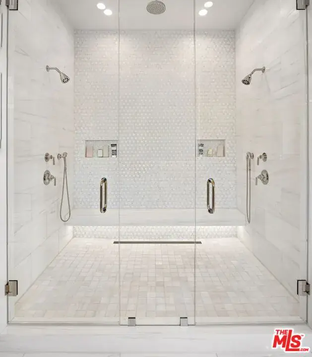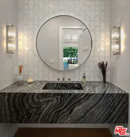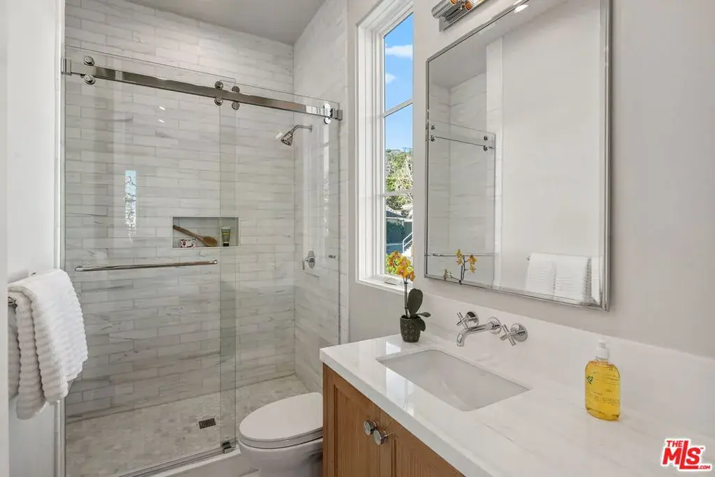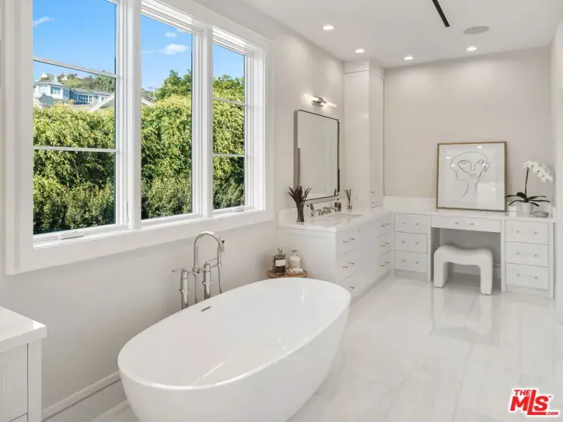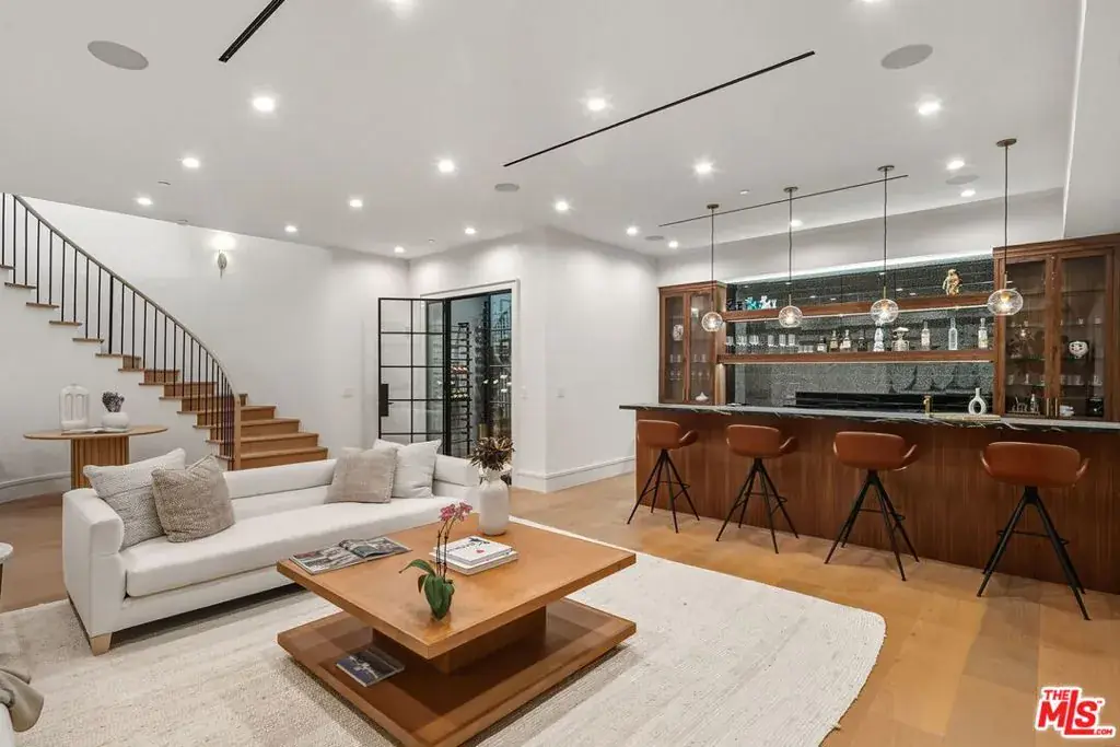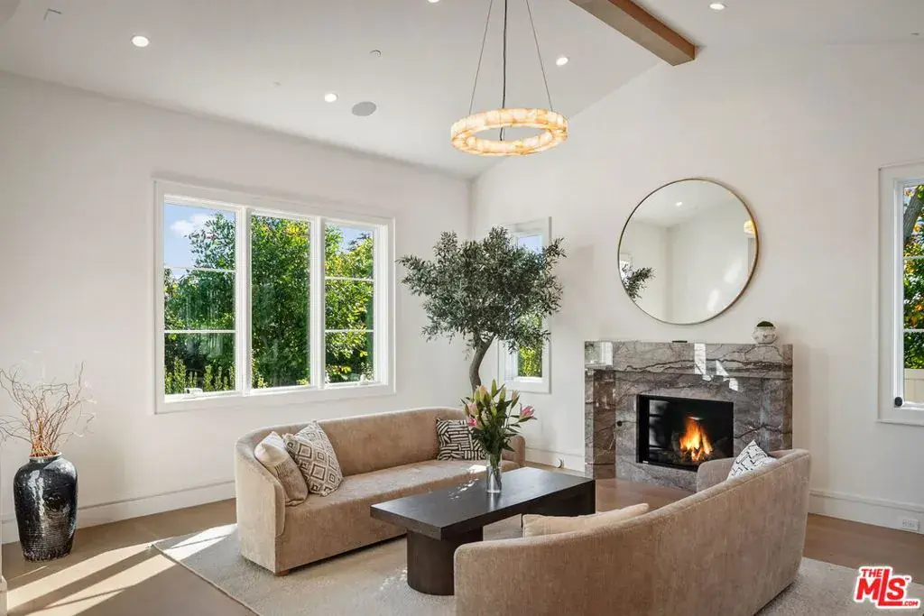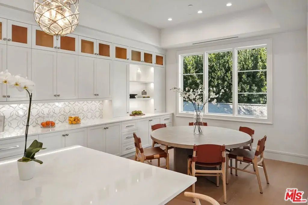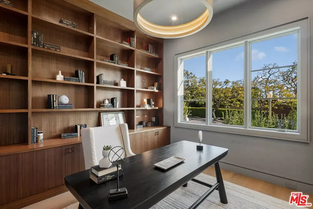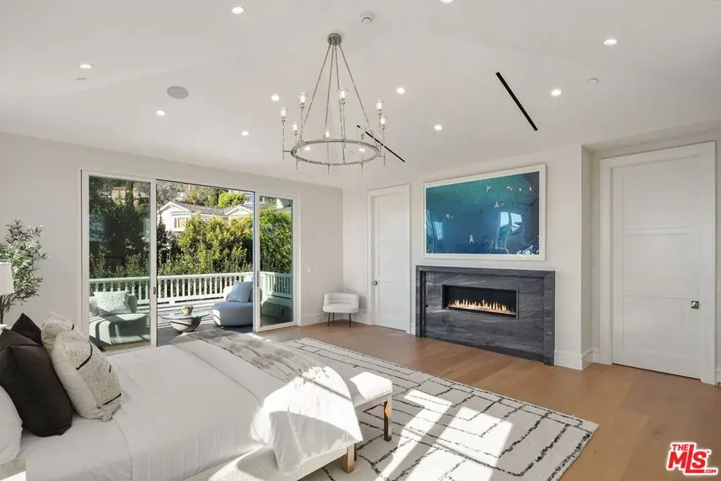 Brand new Hamptons-style Traditional home located in the prestigious Upper Riviera, one of the Westside’s most coveted addresses. Spanning approximately 7,850+/- sq. ft. , this residence offers 6 bedrooms inclusive of a main floor guest suite with sitting room and kitchenette. The home is designed with the finest finishes, combining timeless elegance with modern conveniences. The entry leads to a floating staircase, and opens to a grand living room and formal dining room area. There is also an office/study with floor-to-ceiling walnut cabinetry. The gourmet kitchen features a full Subzero/Wolf suite of appliances, oversized island, butler’s pantry, and a large walk-in pantry. The kitchen opens to a breakfast area and spacious family room with oak built-in cabinetry, and expansive La Cantina glass doors leading to the backyard. The home is finished with white oak floors throughout, a multiple-zone HVAC system, and full smart wiring adaptable to any owner’s needs. There is a Lutron lighting system, security system with multiple cameras, and Waterworks fixtures throughout. The upper level has a primary bedroom with fireplace, balcony, and spa-like marble bathroom featuring dual vanities, makeup area, oversized dual shower with multiple sprayers, two separate water closets both with Toto Washlet toilets, and a spacious walk-in closet. Three additional en-suite bedrooms with walk-in closets complete this level. The lower level is designed for entertaining with a state-of-the-art theater, large great room with bar, wine room, gym, guest/maid’s suite, and abundant storage. An elevator services all three floors. Mature landscaping ensures privacy while the salt-water pool, spa, and outdoor BBQ create a relaxing retreat. Additional amenities include a full three-car garage with two EV chargers. A rare offering in the Riviera, this special home blends traditional craftsmanship with contemporary luxury in one of Los Angeles’ most exclusive and quiet neighborhoods, providing a distinctive haven of tranquility.