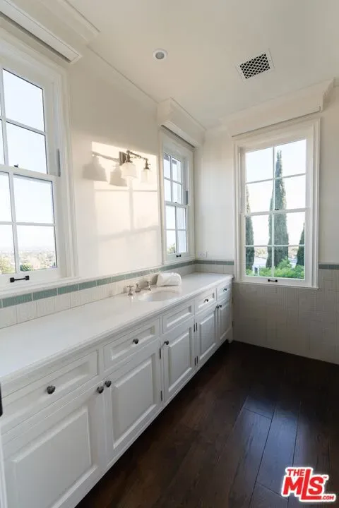Perched in the premier Palisades Riviera enclave, this extraordinary estate commands sweeping 180+ degree city-to-ocean views and is among the Westside’s most spectacular offerings. Set on 1.13 acres, this private compound includes a 13,000 SF main residence with state-of-the-art geothermal HVAC and a 3,000 SF guesthouse; both are LEED-certified. The main residence features 6 bedrooms, 11 bathrooms, a study with full views, a professional media room, an expansive game room opening to the backyard, laundry rooms on two levels, two playrooms, and a grand kitchen and family room ideal for entertaining and everyday living. Very private and meticulously landscaped grounds feature dual flat lawns, a large motor court, fire feature, and a resort-style pool and spa. The 2 bedroom, 3 bath guesthouse includes a serene Japanese soaking tub, an 800 SF lower-level gym opening directly to panoramic city views and a separate kitchen. This is truly one of Los Angeles’ most remarkable and iconic estates.