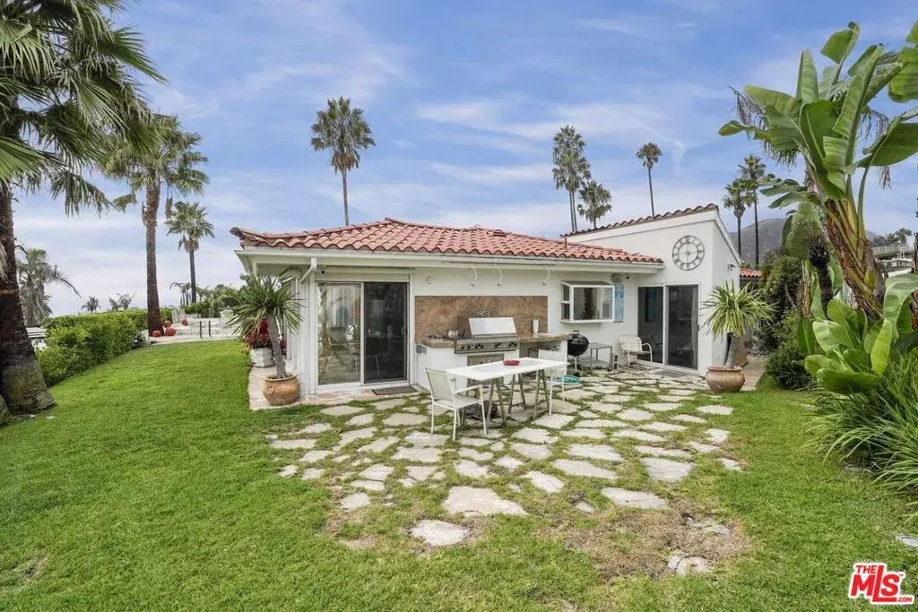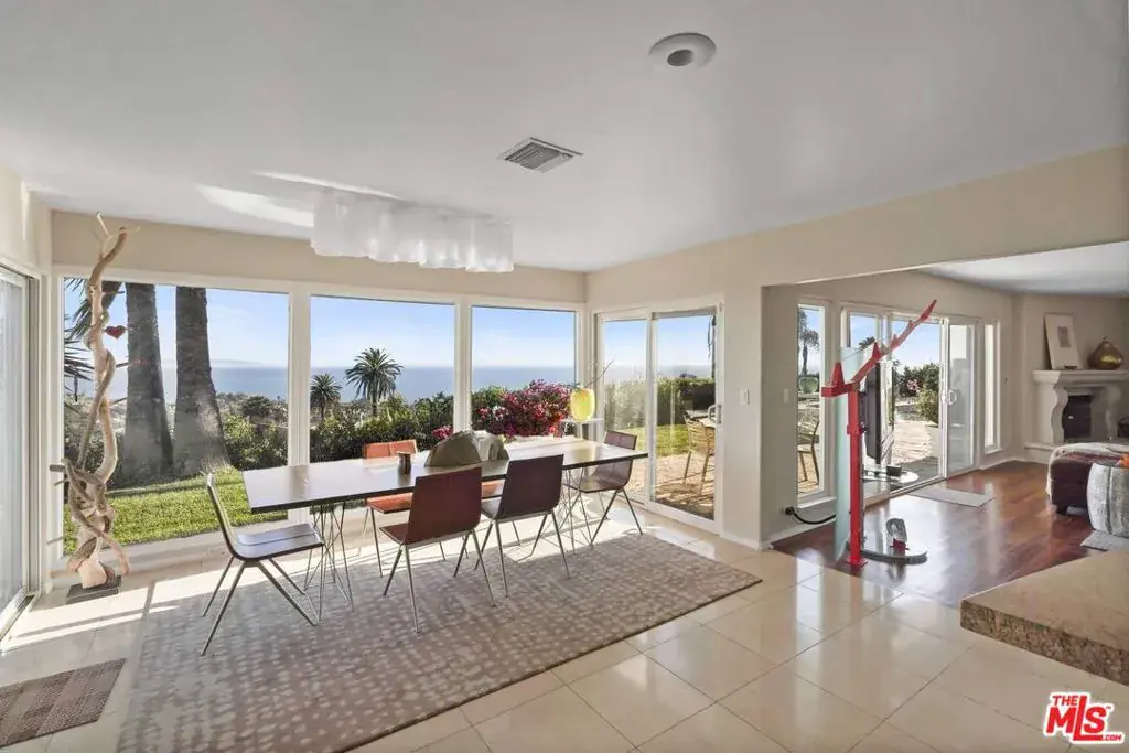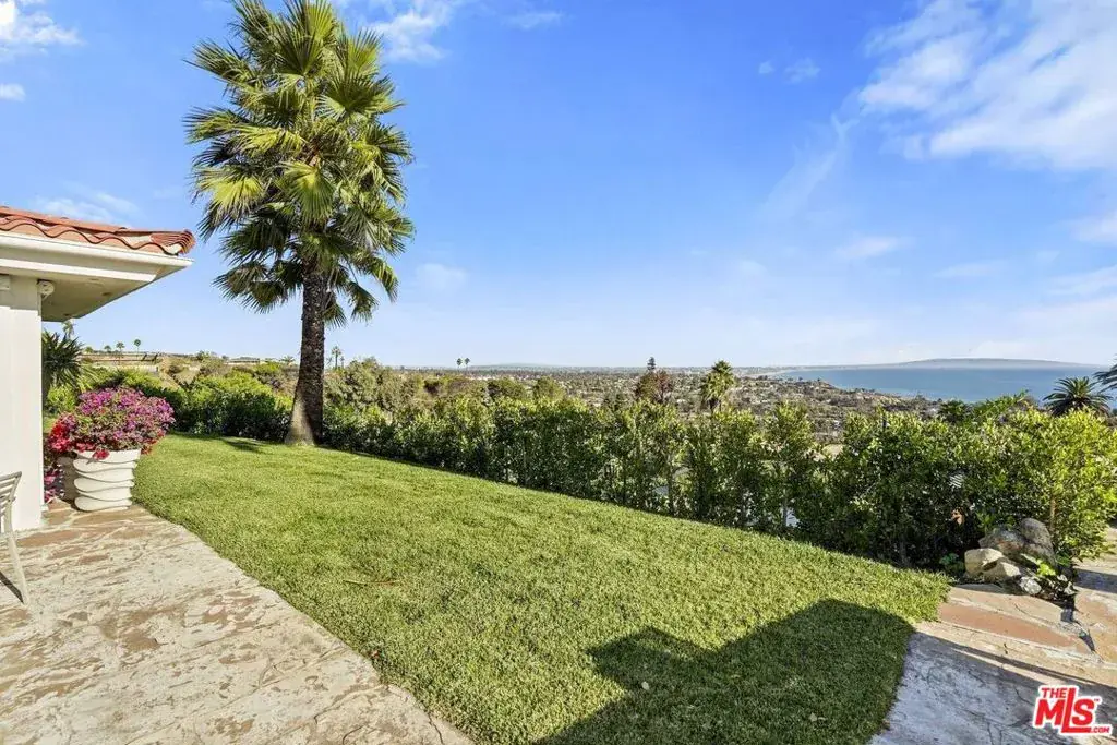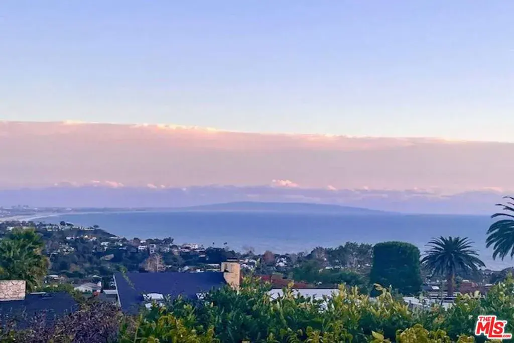 This incredible single-level modern Mediterranean showcases unobstructed 180-degree views of the ocean, coastline, Catalina, and shimmering city lights from nearly every room. Perched on a quiet cul-de-sac, the residence combines spectacular vistas with privacy, elegance, and a highly desirable layout. Set on approximately 9,800+ sq. ft. lot with an expansive 100-foot-wide backyard with a gorgeous pool and spa. The home spans approximately 2,900+ sq. ft. of living space. It features 4 bedrooms, 3.5 baths, plus a dedicated office space, also a large den with a wet bar. The interiors are appointed with gorgeous mahogany floors, a decorative working fireplace, redone bathrooms (one with steam shower), and a large gourmet kitchen with a dining area overlooking the yard and ocean beyond.The primary suite is a true retreat, offering breathtaking ocean views, a spacious walk-in closet, luxurious bathroom and direct access to the outdoors. The seamless indoor-outdoor flow extends to multiple entertaining spaces: a grassy yard, hardscaped patio, side yard with built-in BBQ for al fresco dining, and set against total privacy. Home is offered fully furnished, with some of the artwork included. This is a turn-key opportunity to enjoy the Palisades lifestyle immediately. Priced just above land value and sold in as-is condition, the property provides both present-day comfort and tremendous potential to reimagine to your own style. A truly unique residence where privacy, elegance, and some of the most captivating views in Los Angeles come together.