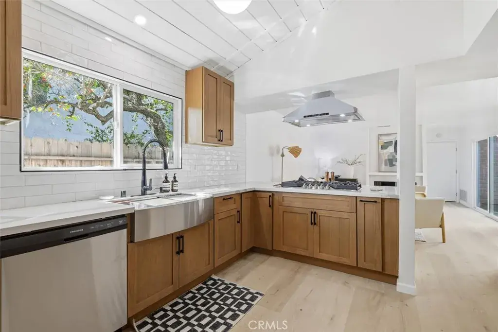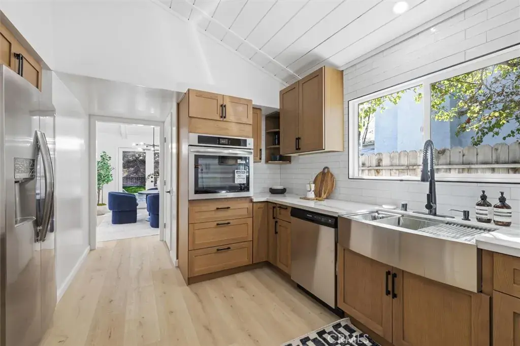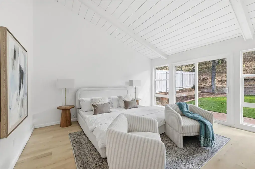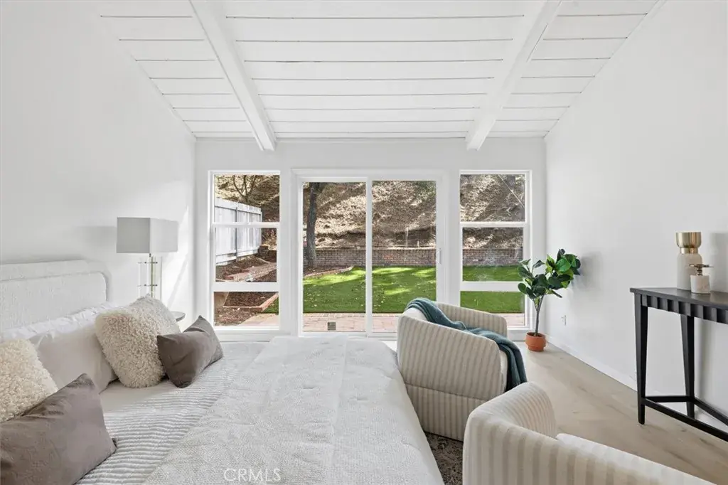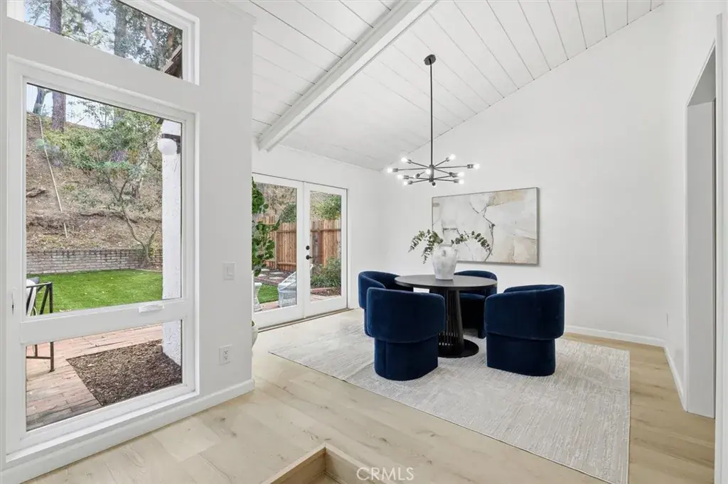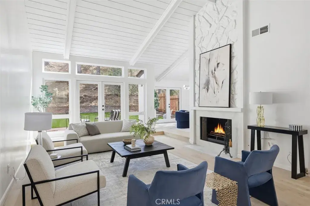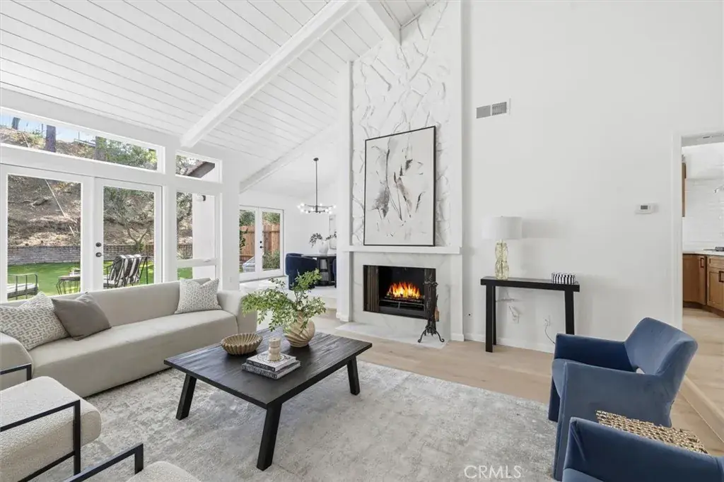 When you arrive at this Pacific Palisades residence, you are welcomed by timeless California architecture, tranquil hillside views, and a family friendly neighborhood. This single-story home blends relaxed coastal living with elegant design, offering three bedrooms and two bathrooms across approximately 2,200 square feet of thoughtfully curated space. Inside, natural light floods the open layout through expansive windows, creating a warm and inviting atmosphere. The main living area centers around a statement fireplace and vaulted ceilings, giving the space a sense of openness and charm. The adjoining dining area flows seamlessly into a spacious kitchen that offers generous cabinetry, ample prep space, and the perfect foundation for a modern culinary upgrade. Whether entertaining guests or enjoying quiet evenings at home, every corner of this residence is designed for comfort and effortless living. Sliding glass doors open to a private backyard sanctuary surrounded by lush landscaping. The outdoor space offers a tranquil setting for entertaining, relaxing, or enjoying the California sunshine. With approximately 6,600 square feet of land, there is room to expand, add a pool, or create an outdoor kitchen and lounge for year-round enjoyment. The primary suite is a serene retreat with direct access to the yard, a spacious walk-in closet, and an ensuite bath ready for a luxurious reimagination. Two additional bedrooms provide versatility for guests, family, or a home office, each