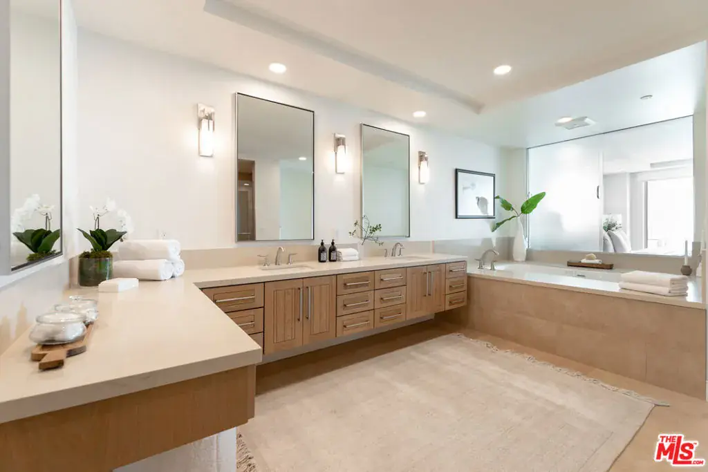 In Pacific Palisades, a brand new level of luxury and exclusivity awaits at Sea View Villas. This gorgeous contemporary building can be seen from miles away on Pacific Coast Highway. With only 27 3-bedroom residences for lease, Sea View Villas is a one of a kind all inclusive building with ocean views and world-class amenities. This 3 bedroom, 3 bath corner unit home spans 2900+ SF with breathtaking panoramic Pacific and coastal views of the Santa Monica Pier, Palos Verdes, and Catalina Island. The open-concept floor plan with high ceilings leads to an expansive view deck with a built-in Lynx BBQ perfect for entertaining and watching sunsets. Designed with the finest finishes, the home includes a chef’s kitchen with stainless steel appliances (including Wolf range and SubZero refrigerator), white oak cabinetry and travertine countertops. Other highlights: Plank white oak floors, ensuite bathrooms clad in travertine, large great room with fireplace, ocean view master with spa bath, dressing room, walk-in closets with custom built-ins, laundry room, and a private 3-car garage. Sea View Villas amenities include full-service concierge, pool and spa, 24 hour on-site health club, billiard room, conference room, resident lounge, and snack room and ALL utilities included in rent. Electicity, gas, water, trash, cable, internet, we will cover it all making it easy living for you! Security gated and guarded in one of the best locations in Los Angeles. Sea View Villas is a one of kind building on the West side. This unit is furnished.