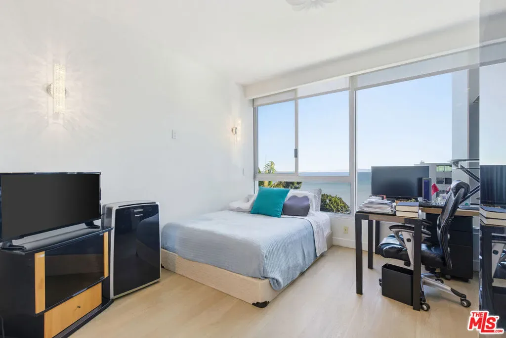 Experience elevated coastal living in this exquisitely remodeled, ultra-modern two-bedroom, two-bath residence, set within the prestigious 9-acre, 24-hour guard-gated Edgewater Towers. Just steps from the beach, this exceptional home captures sweeping 180-degree ocean views from every room, with panoramic vistas extending all the way to Palos Verdes. Flooded with natural light, the open-concept layout seamlessly blends the kitchen, dining, and living areas, all flowing to a private balcony where ocean breezes and sunset views create an effortless indoor-outdoor lifestyle. Both bedrooms offer serene ocean views and spacious walk-in closets, providing a refined retreat with resort-level comfort. Edgewater Towers is one of the most coveted oceanfront residential communities on the coast, offering a true resort lifestyle with two ocean-view saltwater pools and spa, state-of-the-art fitness center, tennis and basketball courts, scenic hiking and walking trails, gazebo, and expansive picnic and BBQ areas overlooking the Pacific. Ample guest parking and impeccable grounds further enhance the experience. Perfectly positioned moments from Santa Monica, and across the street from the world famous gladstones restaurant, residents enjoy world-class dining, luxury boutiques, and everyday conveniences, all while being immersed in a private, tranquil oceanfront setting. Malibu is just minutes away, completing an unparalleled coastal location. HOA dues include all utilities, including water, electricity, gas, and internet. Entry is guard-gated; all visitors must be registered with security prior to arrival.