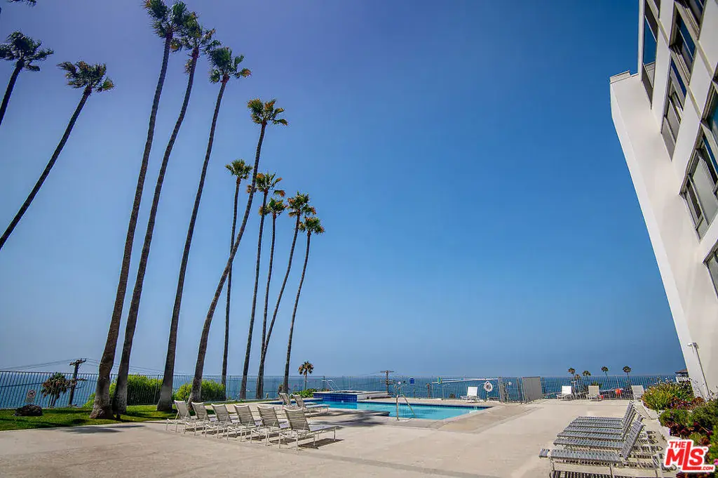 Southern California seaside living at it’s finest! Experience resort style living here at Edgewater Towers, a 9 acre gated condominium complex overlooking the Pacific Ocean where Sunset Blvd meets the Coast Highway. Crisp, 2nd floor 1-bedroom/1 bath unit, plus separate den. Awash in sunlight, this unit features easy maintenance beautiful bleached oak vinyl plank flooring, tall ceilings and spectacular head on ocean views from the living room, bedroom and kitchen with lush green treetop and Santa Monica mountain views from the dining room and den. The generous square footage and privacy of the den make it easily useful as a 2nd bedroom and since the unit comes with 2 dedicated garage parking spots it could be perfect for 2 roomates! On site amenities include 2 heated swimming pools w/spas and a well equipped fitness center as well as ample guest parking. All utilities (including highspeed internet) are included in the monthly rent! Minutes to Malibu or Santa Monica along PCH. Owner may consider 6 month lease making this perfect as a temporary “waystation”, a prime residence or pied-a-terre.